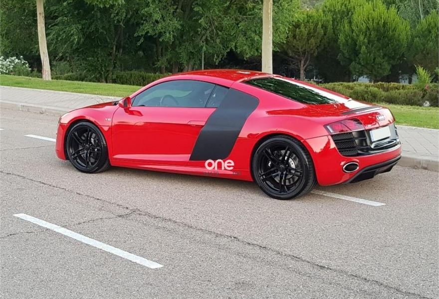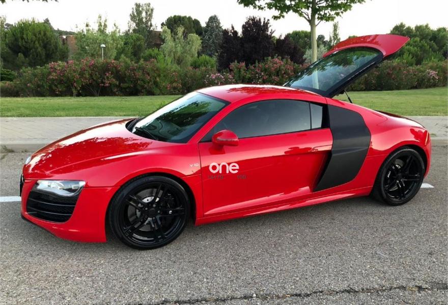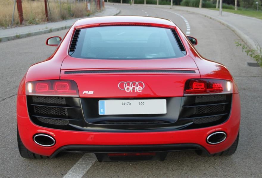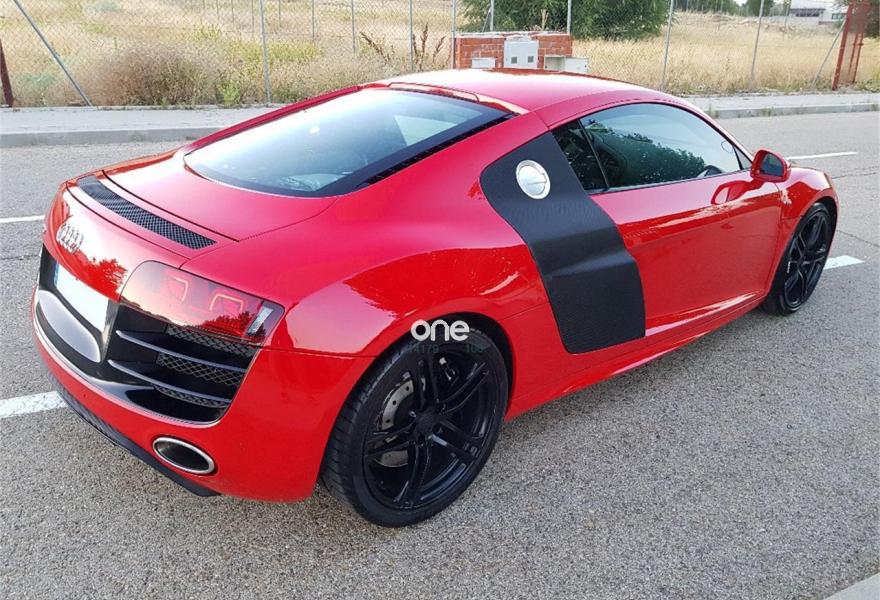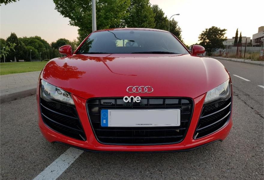 AUDI R8, Gasolina, año 2009, 57000 kilómetros, color Rojo metalizado, precio 74900€. Intercambiador de CD,Instalación básica manos libres (Bluetooth) para teléfono móvil,Mando a distancia universal (Home Link),Preinstalación de teléfono móvil con kit manos libres (bluetooth),Llantas de aleación 8,5Jx19 delante, 11Jx19 detrás, diseño 5 radios dobles pulido brillante con neumáticos 235/35 delante, 305/30 R19 detrás,Audi parking system delantero y trasero Advanced. Audi R8 5.2 V10, 525 CV, R-Tronic, bang & olufsen, 57.000 KM, nacional con libro de revisiones al día sellado. Absolutamente impecable. Revisión completa recién hecha en Julio 2018.