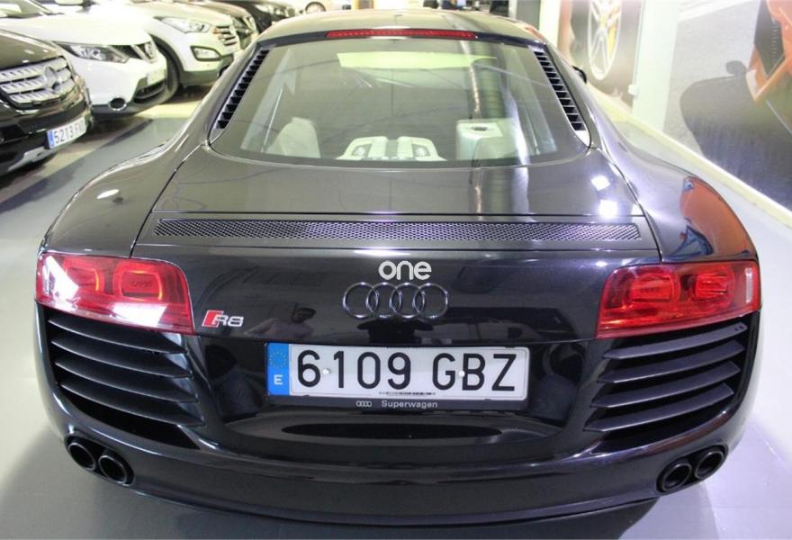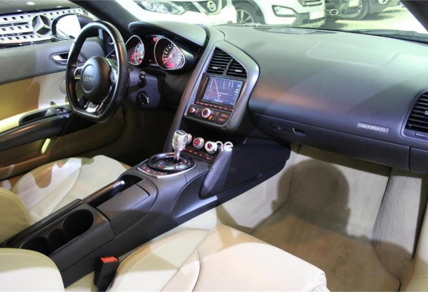 AUDI R8, Gasolina, año 2008, 95000 kilómetros, color Negro metalizado, precio 48990€. Asientos delanteros bucket,Cuero Beige Luxor - Techo Negro,Techo y bandeja posterior en Alcantara Audi exclusive,Intercambiador de CD,Preinstalación de teléfono móvil con kit manos libres (bluetooth),Sistema de navegación con DVD,Sistema de sonido Bang & Olufsen,Pintura metalizada,Audi parking system delantero y trasero. -VEHÍCULO NACIONAL, CON LIBRO DE REVISIONES SELLADO EN CONCESIONARIO OFICIAL AUDI, CERTIFICADO DE KM Y DE NO SINIESTRALIDAD