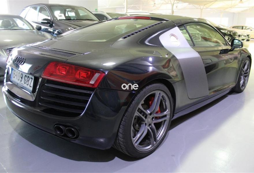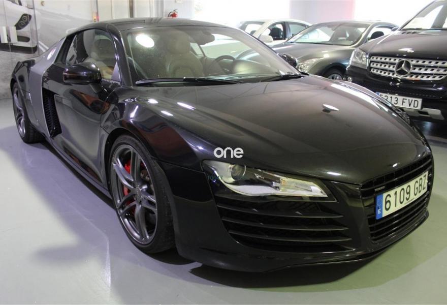 AUDI R8, Gasolina, año 2008, 95000 kilómetros, color Negro metalizado, precio 48990€. Asientos delanteros bucket,Cuero Completo Beige Luxor (Techo Beige Luxor),Techo en Alcantara Audi exclusive,Intercambiador de CD,Preinstalación de teléfono móvil con kit manos libres (bluetooth),Sistema de navegación con DVD,Sistema de sonido Bang & Olufsen,Pintura metalizada,Audi parking system delantero y trasero. -VEHÍCULO NACIONAL, CON LIBRO DE REVISIONES SELLADO EN CONCESIONARIO OFICIAL AUDI, CERTIFICADO DE KM Y DE NO SINIESTRALIDAD