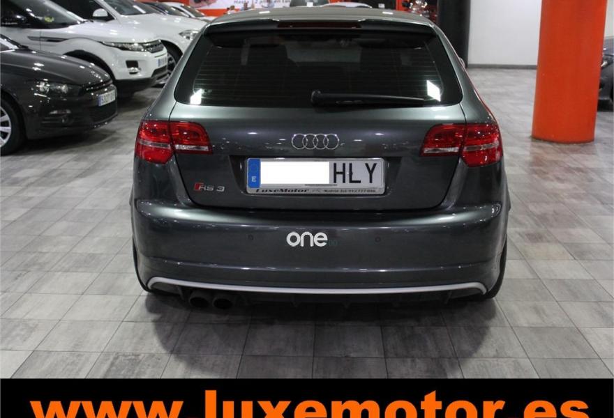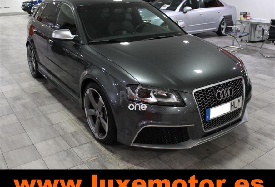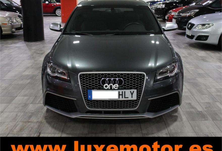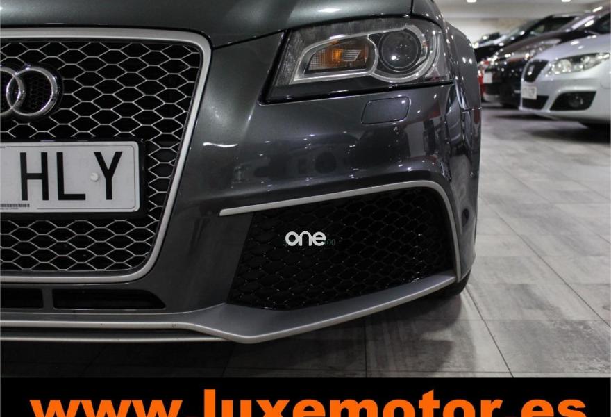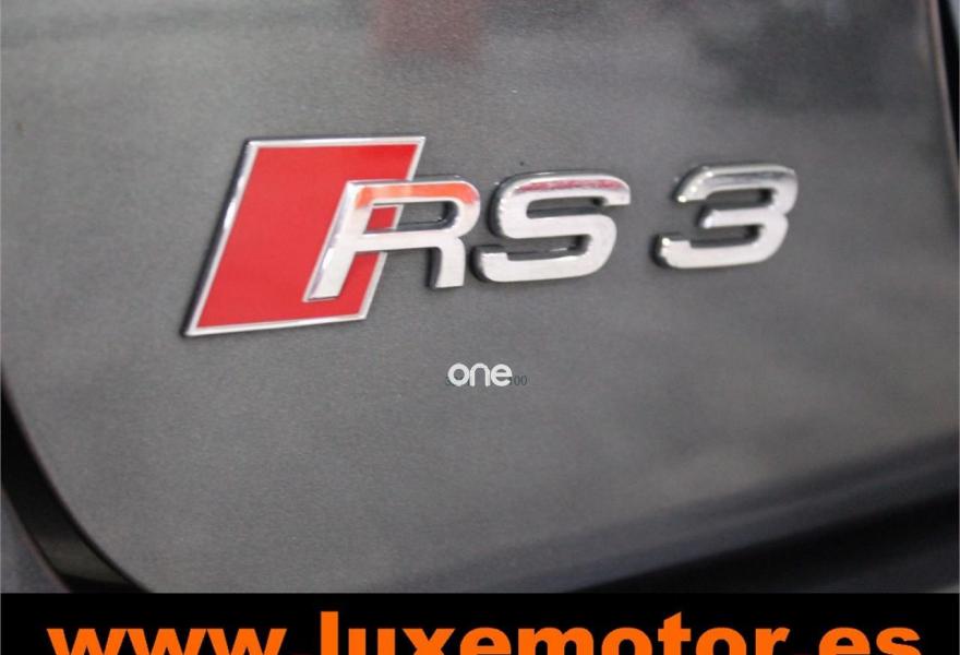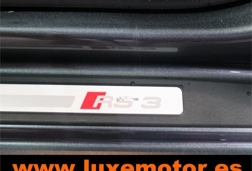 AUDI RS3, Gasolina, año 2012, 42228 kilómetros, color Gris / Plata metalizado, precio 39990€. Paquete portaobjetos y maletero,Inserciones en aluminio Race,Regulación lumbar eléctrica de los asientos delanteros,Tapicería de cuero napa fina con un cosido con diseño de diamante de Audi Exclusive,Audi music interface,Consola para USB,Equipo de Sonido Bose,Instalación básica de Bluetooth,Intercambiador de CD,Preinstalación de teléfono móvil con kit manos libres (Bluetooth) en apoyabrazos delantero,Sistema de navegación plus con DVD,Alfombrillas con el logo RS3 (Audi exclusive),CD para sistema de navegación,Control automático de velocidad (Tempomat),Cuero Napa Fina Negro,Extensión del paquete cuero (Audi exclusive),Luz adaptativa "Dynamic Adaptive Light",Paquete de iluminación interior,Paquete portaobjetos,Parabrisas laminado con banda solar,Sensor de luces y lluvia,Volante en cuero especial (Audi exclusive),Cristales oscuros en parte trasera,Gris Daytona (efecto perla),Pintura efecto perla,Pintura personalizada Audi exclusive,Llantas de aleación ligera 8Jx19 diseño de 5 radios "rotor" en óptica negro y rojo con neumáticos delanteros 235/35 R19 - neumáticos traseros 225/35 R19. LUXEMOTOR