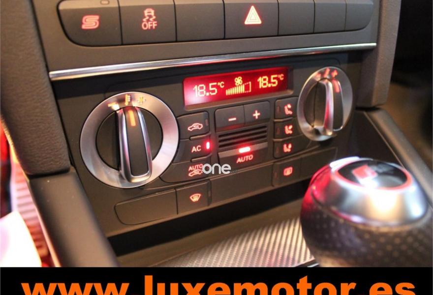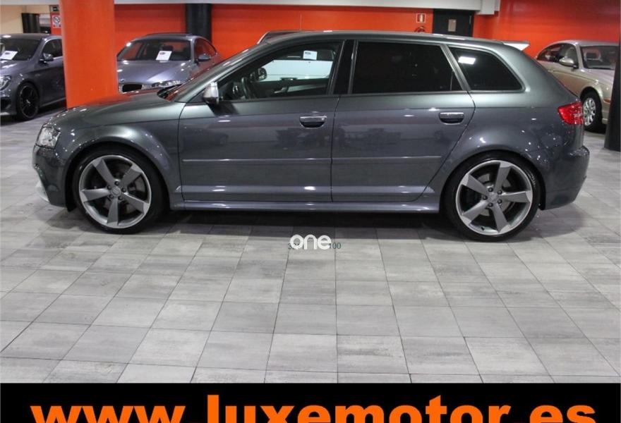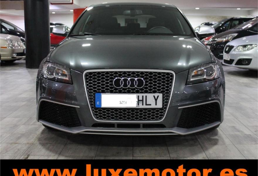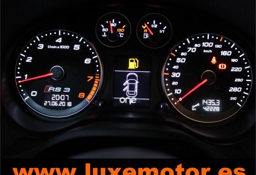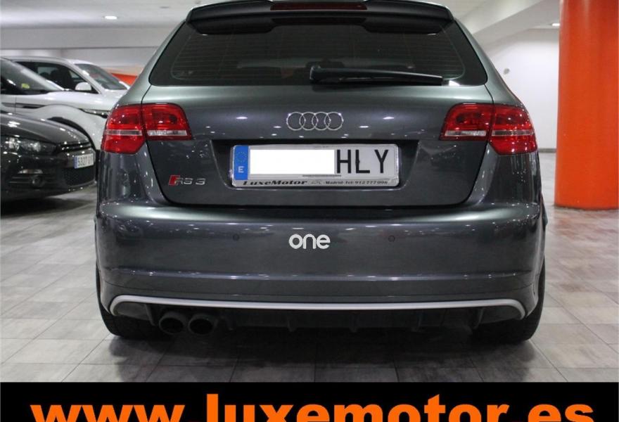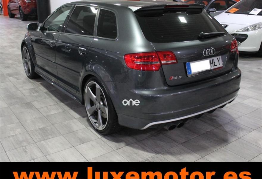 AUDI RS3, Gasolina, año 2012, 42228 kilómetros, color Gris / Plata metalizado, precio 39990€. Paquete portaobjetos y maletero,Inserciones en aluminio Race,Regulación lumbar eléctrica de los asientos delanteros,Tapicería de cuero napa fina con un cosido con diseño de diamante de Audi Exclusive,Audi music interface,Consola para USB,Equipo de Sonido Bose,Instalación básica de Bluetooth,Intercambiador de CD,Preinstalación de teléfono móvil con kit manos libres (Bluetooth) en apoyabrazos delantero,Sistema de navegación plus con DVD,Alfombrillas con el logo RS3 (Audi exclusive),CD para sistema de navegación,Control automático de velocidad (Tempomat),Cuero Napa Fina Negro,Extensión del paquete cuero (Audi exclusive),Luz adaptativa "Dynamic Adaptive Light",Paquete de iluminación interior,Paquete portaobjetos,Parabrisas laminado con banda solar,Sensor de luces y lluvia,Volante en cuero especial (Audi exclusive),Cristales oscuros en parte trasera,Gris Daytona (efecto perla),Pintura efecto perla,Pintura personalizada Audi exclusive,Llantas de aleación ligera 8Jx19 diseño de 5 radios "rotor" en óptica negro y rojo con neumáticos delanteros 235/35 R19 - neumáticos traseros 225/35 R19. LUXEMOTOR