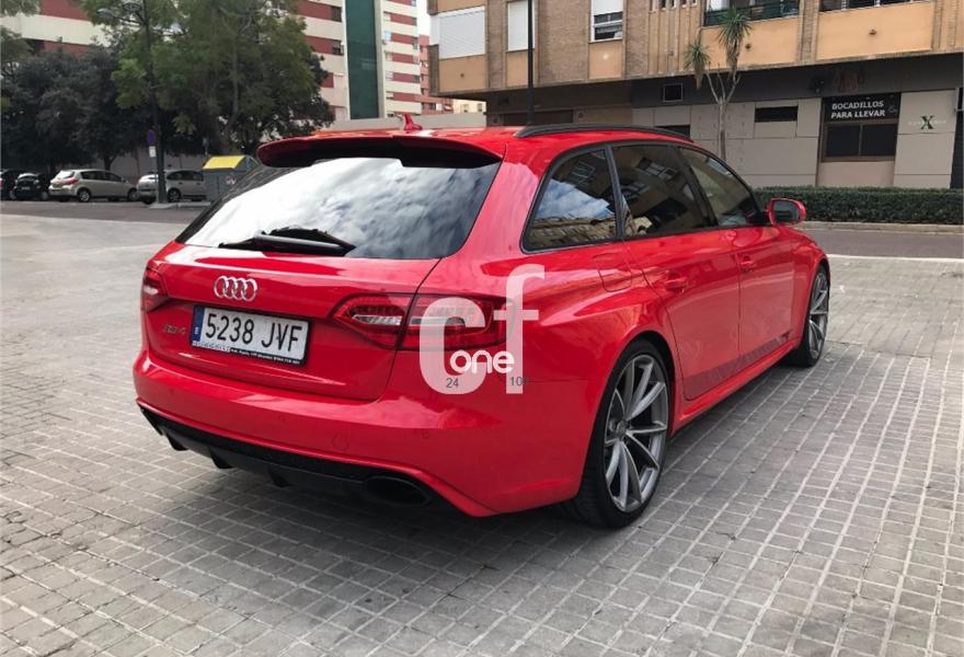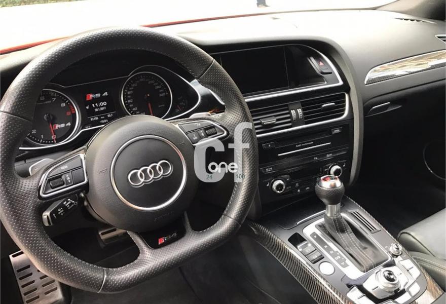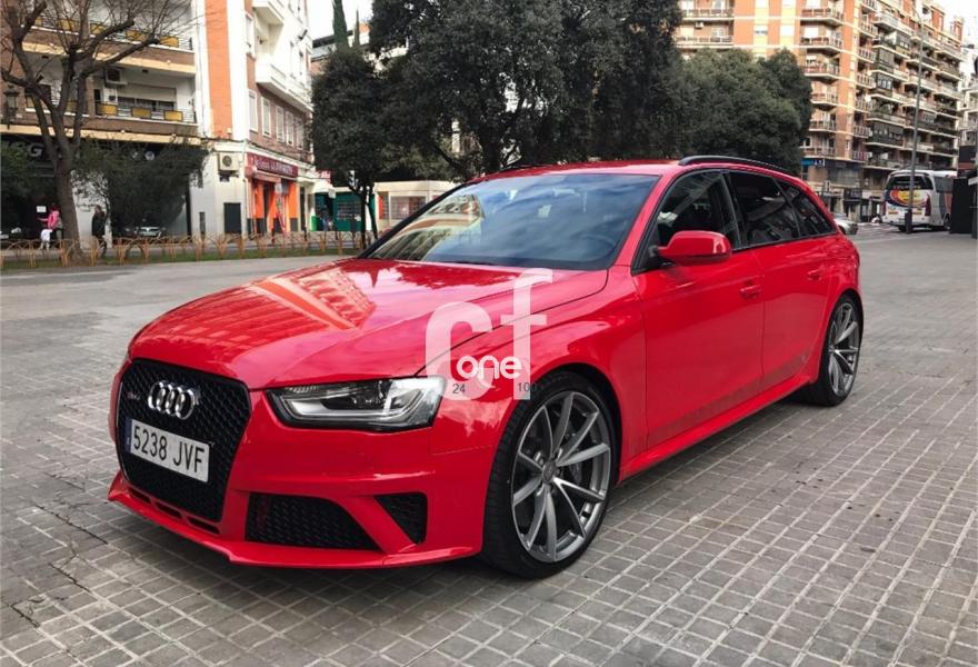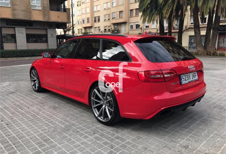 AUDI RS4, Gasolina, año 2013, 59900 kilómetros, color Rojo , precio 59900€. Paquete de asistencia,Sistema de escape deportivo,Asientos delanteros calefactables,Asientos delanteros deportivos RS tipo baquet,Inserciones interiores en aluminio mate cepillado,Moqueta en colores especiales Audi exclusive,Audi music interface,Audio Sound System,Instalación básica manos libres (Bluetooth)para teléfono móvil,Equipo de sonido Bang & Olufsen,MMI navegación plus,Preinstalación de teléfono móvil con kit manos libres (Bluetooth) en apoyabrazos delantero,Radio digital DAB,Radio Simphony,Control Automático de Velocidad (Tempomat),Dirección dinámica "dynamic steering",Diferencial trasero deportivo,Espejo retrovisor interior antideslumbrante,Espejos retrovisores exteriores calefactables y abatibles eléctricamente,Faros inteligentes "smart beam",Llave de confort "advanced key",Luz adaptativa "dynamic adactative light",Sistema de control de presión de los neumáticos,Llantas de aleación 9Jx20 diseño de 5 brazos rotor en titanio con neumáticos 265/30 R 20,Frenos delanteros cerámicos,Velocidad máxima regulada a 280 km/h,Tren de rodaje deportivo plus con Dynamic Ride Control (DRC),Volante deportivo de cuero multifuncional con levas, diseño RS,Extensión de garantía Audi 3 años adicionales o un máximo de 100.000 km,Audi parking system advanced,Audi Hold assist,Fijación para asientos infantiles ISOFIX y desactivador del airbag del acompañante,Cristales tintados oscuros. //Único propietario//Revisiones en servicio oficial//2 llaves//