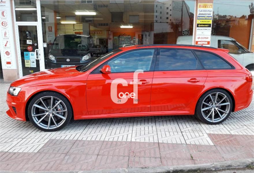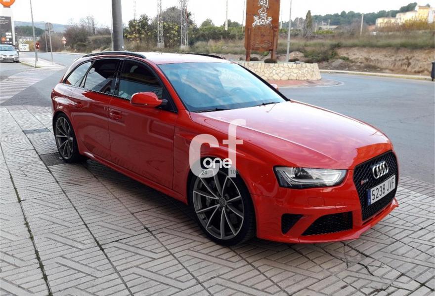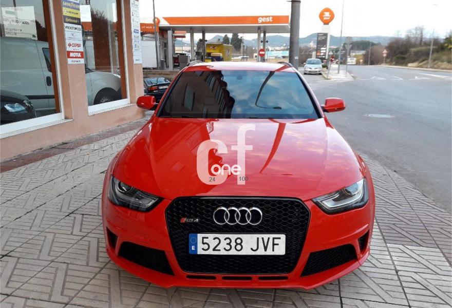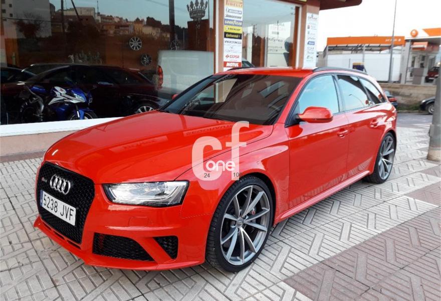 AUDI RS4, Gasolina, año 2013, 59950 kilómetros, color Rojo , precio 59900€. Audi side assist y Audi active lane assist,Paquete de asistencia,Receptor de TV analógico y digital y radio digital (DAB),Sistema de escape deportivo,Asientos delanteros calefactables,Asientos delanteros de confort climatizados,Asientos delanteros deportivos RS tipo baquet,Inserciones en malla de acero inoxidable,Inserciones interiores en aluminio mate cepillado,Tapicería de cuero Valcona Audi exclusive (paquete 2),Tapicería en cuero Napa fina para asientos tipo bucket,Audi music interface,Audio Sound System,Cargador de 6 CD,Cargador de CD + Reproductor de DVD,Equipo de sonido Bang & Olufsen,Instalación básica manos libres (Bluetooth)para teléfono móvil,Mando a distancia (HomeLink),MMI navegación plus,Preinstalación de teléfono móvil con kit manos libres (Bluetooth) en apoyabrazos delantero,Radio digital DAB,Receptor de TV analógico y digital,Teléfono Audi Bluetooth GSM online,Teléfono Audi Bluetooth GSM con auricular inalámbrico y apoyabrazos central delantero de confort,Alcántara/Cuero Negro - Techo Negro - Asientos Deportivos S,Diferencial trasero deportivo,Elementos de control en cuero especial Audi exclusive,Espejos retrovisores exteriores calefactables y abatibles eléctricamente,Faros inteligentes "smart beam",Toma de corriente de 230 Voltios,Sistema de control de presión de los neumáticos,Parte trasera lacada para asientos tipo baquet,Set de fijación para el maletero,Cristales tintados oscuros,Llantas de aleación 9Jx20 diseño de 5 brazos rotor con neumáticos 265/30 R 20,Llantas de aleación 9Jx20 diseño de 5 brazos rotor en titanio con neumáticos 265/30 R 20,Rojo Misano (efecto perla),Pintura personalizada Audi exclusive,Frenos delanteros cerámicos,Tren de rodaje deportivo plus con Dynamic Ride Control (DRC),Volante deportivo de cuero multifuncional con levas, diseño RS,Extensión de garantía Audi 1 año adicional o un máximo de 90.000 km,Extensión de garantía Audi 3 años adicionales o un máximo de 100.000 km,Audi Hold assist,Audi parking system advanced,Control de crucero adaptativo,Fijación para asientos infantiles ISOFIX y desactivador del airbag del acompañante,Velocidad máxima regulada a 280 km/h. //Único propietario//Revisiones en servicio oficial//2 llaves//