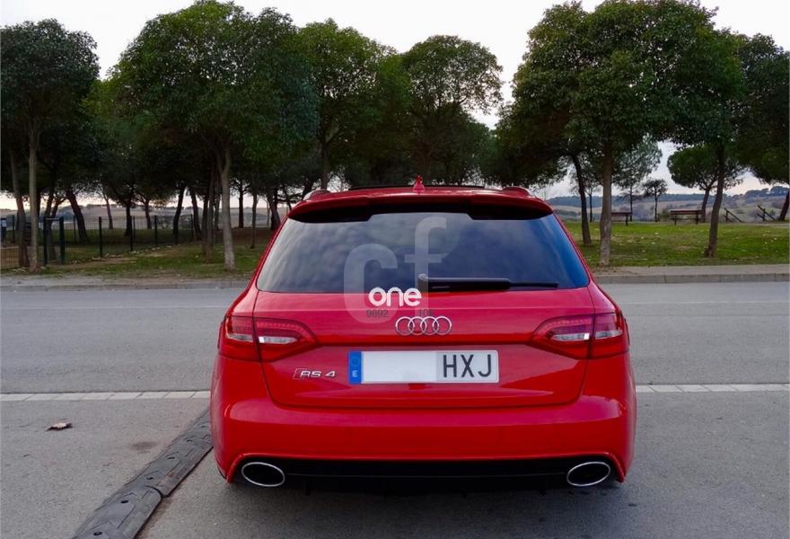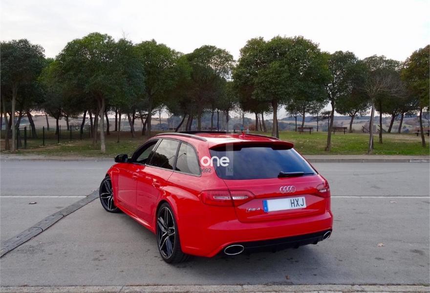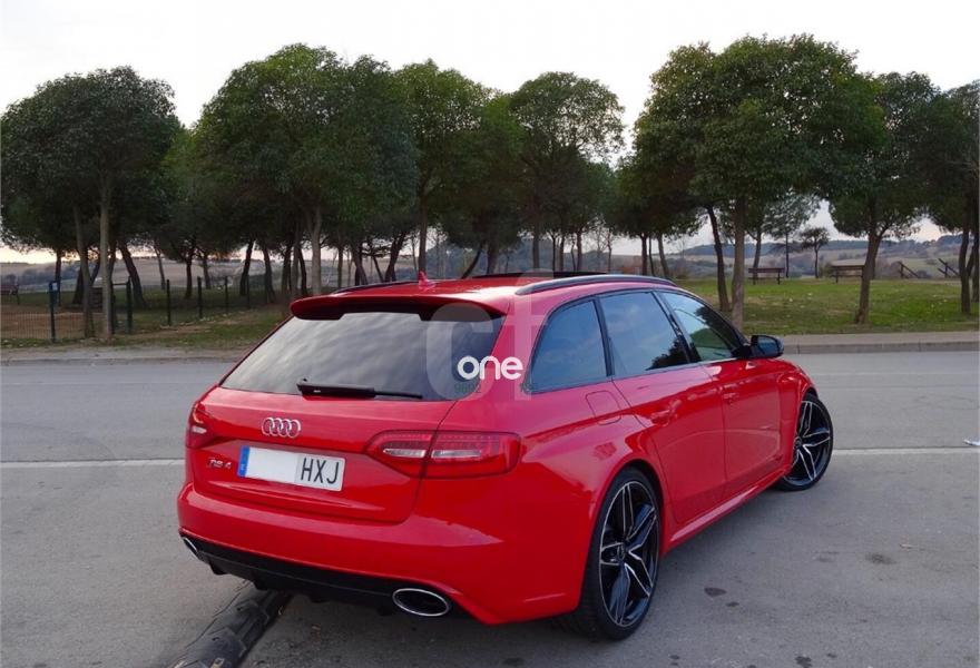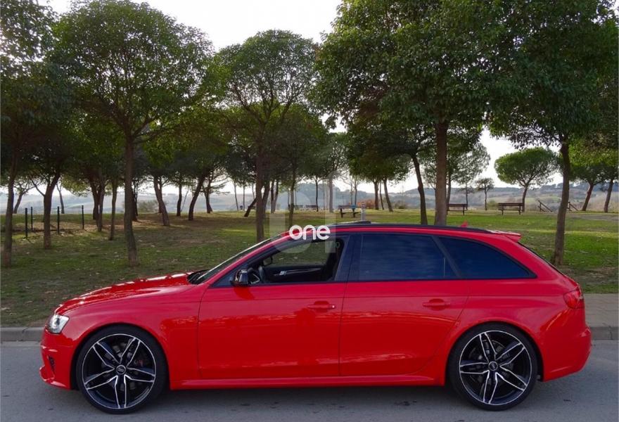 AUDI RS4, Gasolina, año 2014, 81000 kilómetros, color Rojo metalizado, precio 49700€. Audi side assist y Audi active lane assist,Tapicería de Alcantara/cuero Audi exclusive (paquete 1),Instalación básica manos libres (Bluetooth) para teléfono móvil,Instalación manos libres (Bluetooth) para teléfono móvil,MMI navegación plus,Audi side assist (asistente de cambio de carril),Control Automático de Velocidad (Tempomat),Espejo retrovisor interior antideslumbrante,Espejos retrovisores exteriores calefactables antideslumbrantes automáticamente y abatibles eléctricamente,Faros inteligentes "smart beam",Luz adaptativa "dynamic adactative light",Techo panorámico de cristal,Sistema de control de presión de los neumáticos,Pintura metalizada,Rojo Misano (efecto perla),Volante deportivo de cuero multifuncional con levas, diseño RS,Audi active lane assist (asistente mantenimiento de carril),Audi parking system advanced,Control de crucero adaptativo. RS4 AVANT 4.2 FSI V8 QUATTRO 450CV.