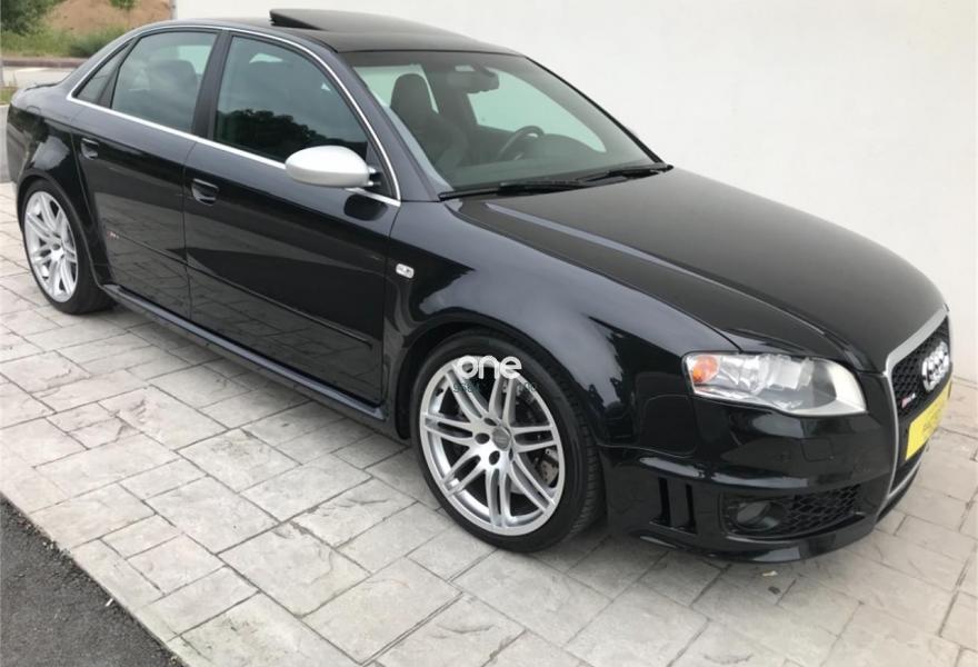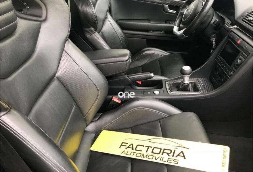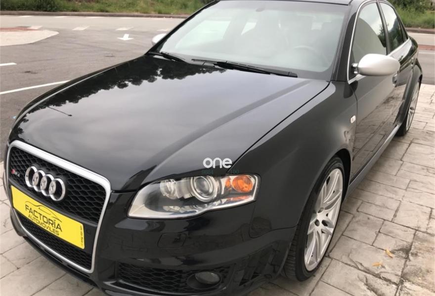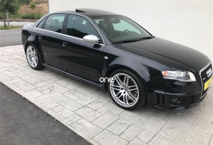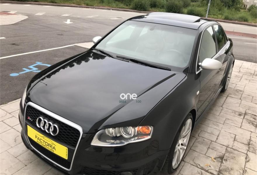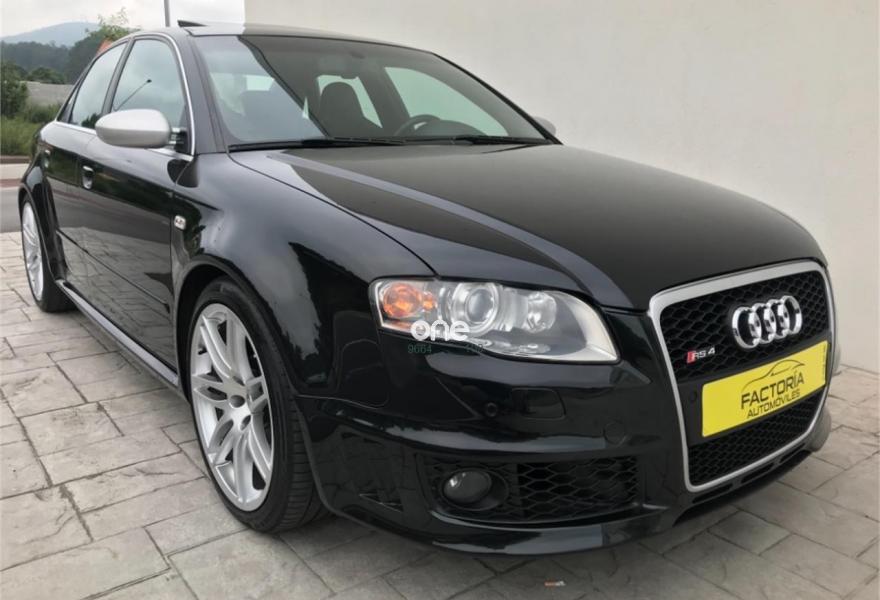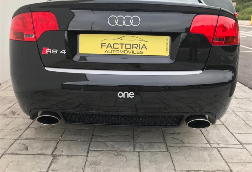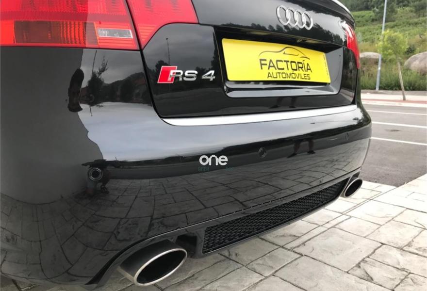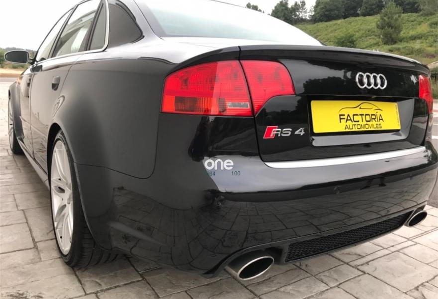 AUDI RS4, Gasolina, año 2006, 198900 kilómetros, color Negro metalizado, precio 20652€. Asientos delanteros y traseros calefact.,Asientos delanteros y traseros calefactables,Asientos deportivos (tipo Recaro),Tapicería en cuero napa seda,Preinstalación de teléfono móvil con kit manos libres (Bluetooth) en apoyabrazos delantero,Sistema de navegación plus con DVD,Apertura eléctrica del maletero,Asiento de conductor con función de memo,Cortinilla electrica luneta posterior,Espejos retrovisores exteriores antideslumbrantes automáticos con función memoria,Guantera refrigerada,Mando a distancia (Home link),Paquete maletero,Techo eléctrico con células solares,Volante deportivo de tres radios multifuncional,Cristales con laminado doble,Espejos antideslumbrantes plegables,Espejos retrovisores exteriores antideslumbrantes automáticos plegables eléctricamente,Retrovisores exteriores (dis. RS) color,Suspensión deportiva plus,Fijación para dos as. infantiles ISOFIX,Fijación para tres asientos infantiles ISOFIX y desactivador airbag del acompañante. AUDI RS4 2006,20652 e más Iva 24990e en estado de colección total con tratamiento integral de carrocería ,todos los mantenimientos al día,asientos recaro eléctricos y calefactables,espejos eléctricos calefactables antideslumbrantes,control de velocidad,navegación plus,sistema sonido Bosé,tv,aux,techo solar con células solares,llantas específicas con neumáticos primera marca,sensores de aparcamiento,cristales traseros oscurecidos,etc,se entrega transferido con un año total de garantía,Posibilidad de financiación 100%.FACTORIA AUTOMÓVILES//Se entrega sin coste añadido en delegación de A Coruña o Costa de Lugo.