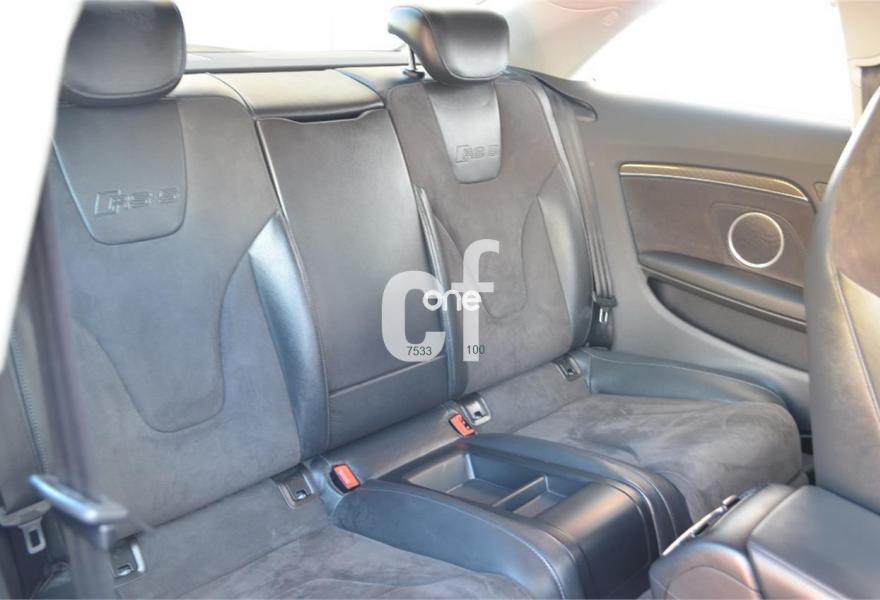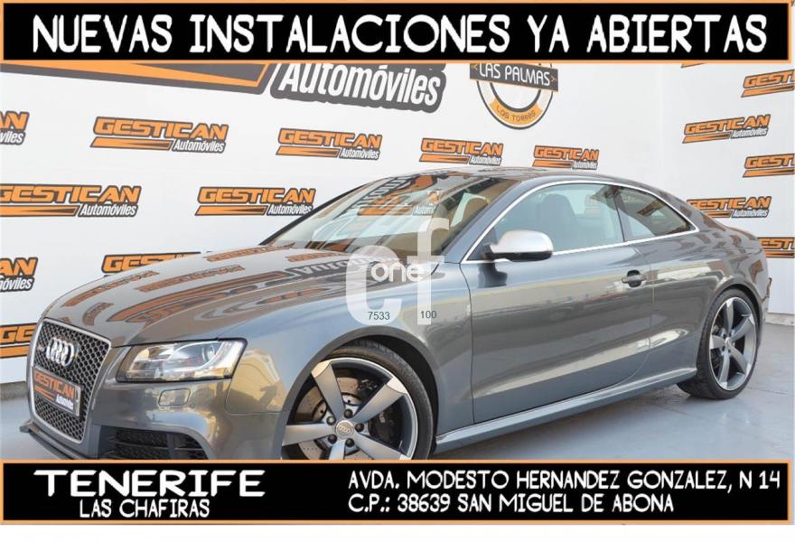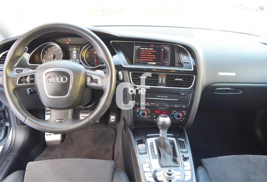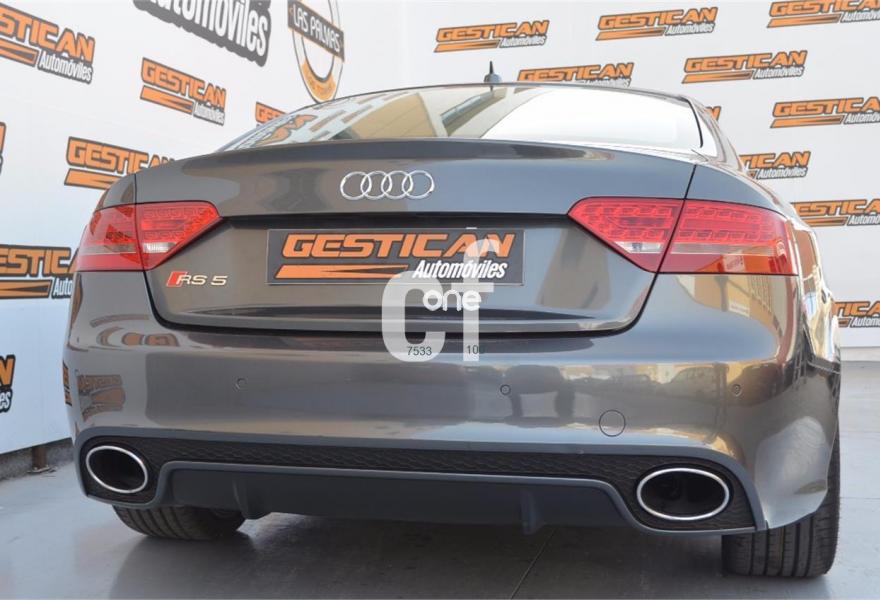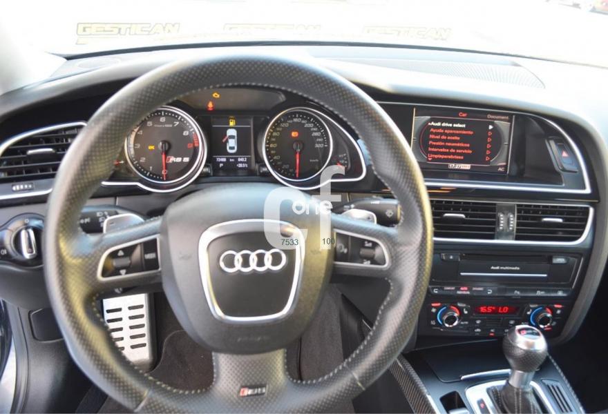 AUDI RS5, Gasolina, año 2011, 79000 kilómetros, color Gris / Plata , precio 48990€. Alfombrillas en colores especiales (según presentador de Audi exclusive) con inscripción "RS5",Tapicería de Alcantara/cuero Audi exclusive (colores especiales según presentador de Audi exclusive),Inserciones interiorres en malla de acero inoxidable oscuro,Audi music interface,Equipo de sonido Bang & Olufsen,Alcántara/Cuero Negro - Techo Negro - Asientos Deportivos S,Faros inteligentes "smart beam",Espejo retrovisor interior antideslumbrante,Diseño carbono para tapa del motor,Elementos de control en "cuero salvaje",MMI navegación plus,Pintura efecto perla,Frenos delanteros cerámicos. AUDI RS5 4.2 FSI Quattro S tronic. Radical berlina de 450 caballos con un equipamiento de alto rendimiento y con el lujo que caracteriza a Audi, cuenta con volante multifuncion, equipo Bang & Olufsen, sillones en Cuero/alcantara etc.