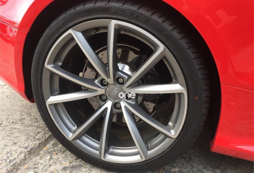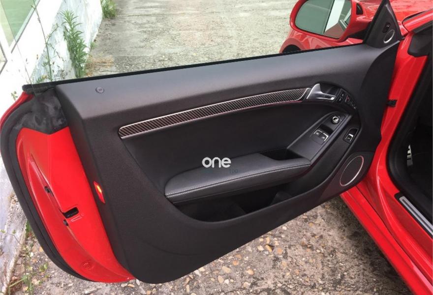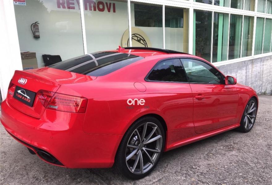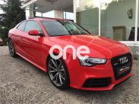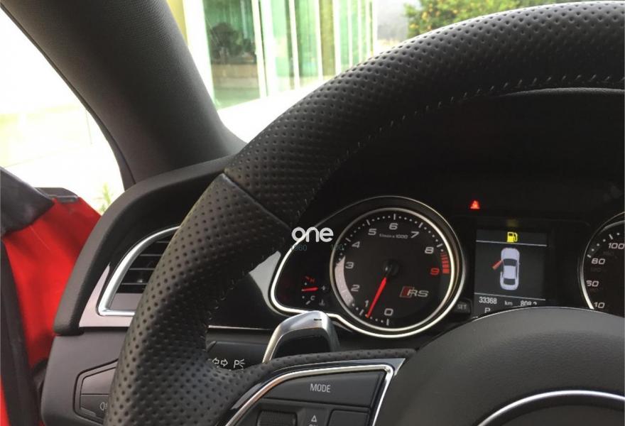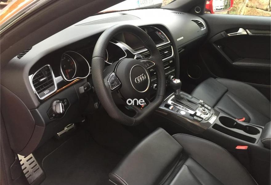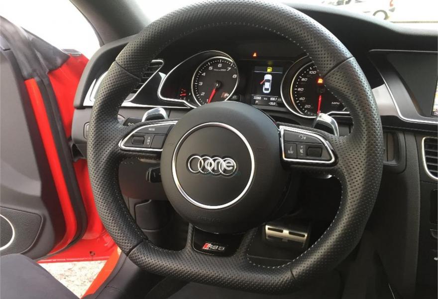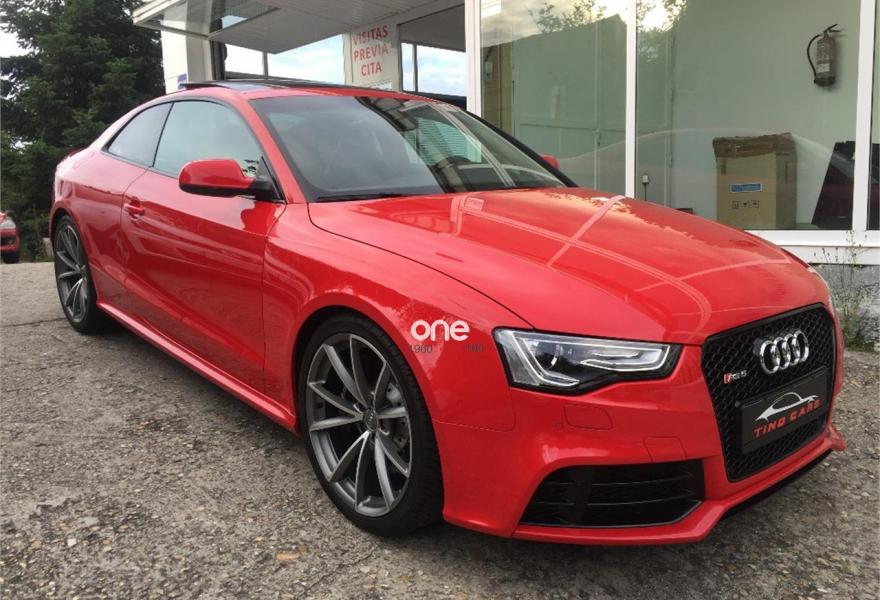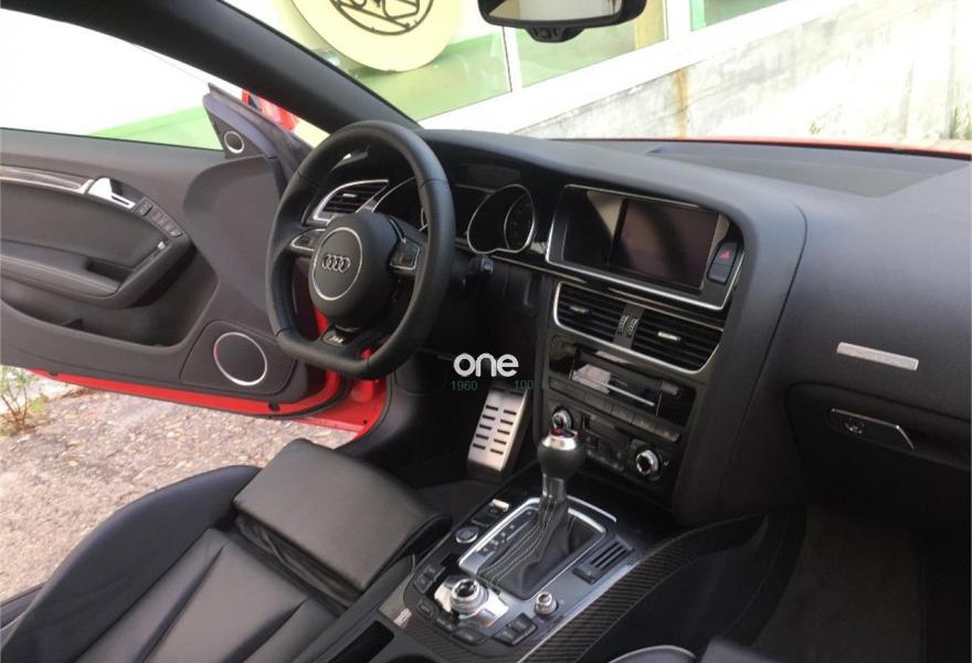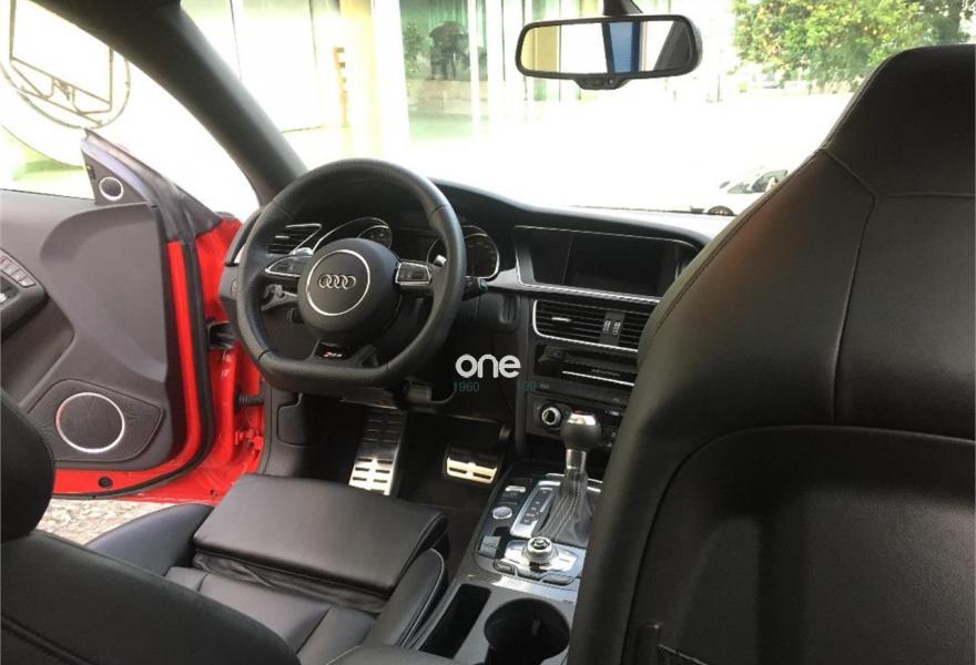 AUDI RS5, Gasolina, año 2014, 33485 kilómetros, color Rojo (Rojo Misano Efecto Perla) , precio 52990€. Rojo Misano (efecto perla),Audi parking system advanced,Audi active lane assist,Audi side assist (asistente de cambio de carril),Volante deportivo de cuero multifuncional con levas, diseño RS,Diferencial trasero deportivo,Pintura efecto perla,Llantas de aleación 9Jx20 diseño de 5 radios en V con neumáticos 275/30 R 20,Espejos retrovisores exteriores calefactables antideslumbrantes automáticamente y abatilbles eléctricamente,Cristales tintados oscuros,Techo solar panorámico,Paquete estilo, color negro,Paquete cuero,Sistema de control de presión de los neumáticos,Llave de confort "advanced key",Espejos retrovisores exteriores calefactables antideslumbrantes automáticamente, abatilbles eléctricamente y con función memoria,Elementos de control en cuero (colores especiales según presentador de Audi exclusive),Cuero Napa Fina Negro/Negro/Gris Roca - Techo Negro - Asientos Deportivos S,Control automático de velocidad (Tempomat),Asientos delanteros con regulación eléctrica y asiento conductor con memoria,MMI navegación plus,Paquete maletero,Equipo de sonido Bang & Olufsen,Cargador de CD + Reproductor de DVD,Audi music interface,Tapicería en cuero Napa fina,Paquete portaobjetos,Asientos delanteros calefactables,Paquete de asistencia,Sistema de escape deportivo,Mando a distancia (Homelink). *** AUDI RS5 QUATTRO STRONIC ***