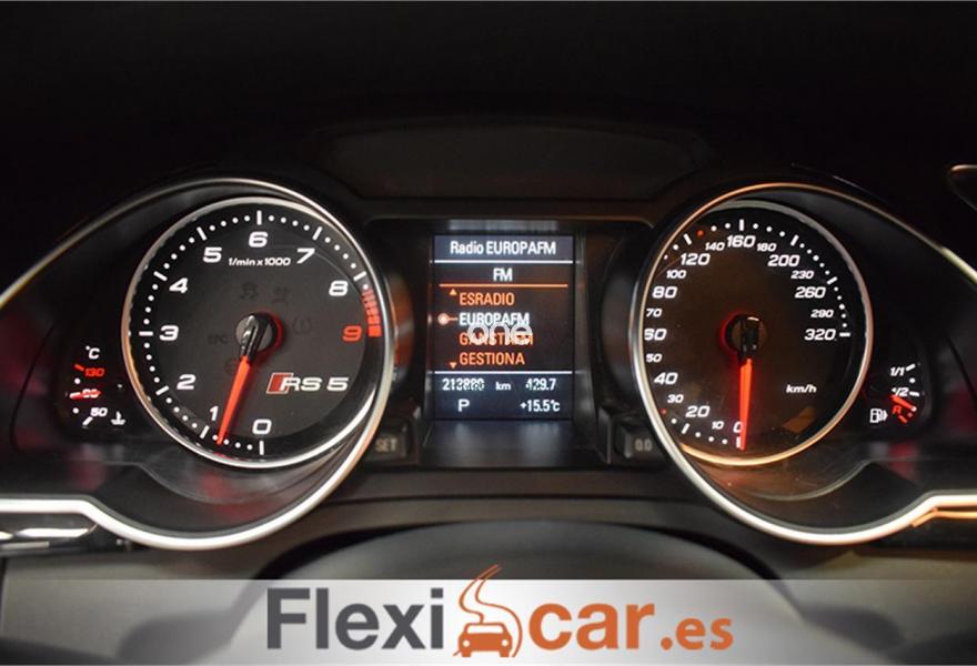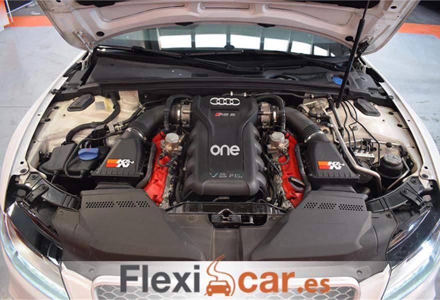 AUDI RS5, Gasolina, año 2011, 199990 kilómetros, color Blanco metalizado, precio 29900€. Alfombrillas en colores especiales (según presentador de Audi exclusive) con inscripción "RS5",Inserciones interiores en aluminio mate cepillado,Tapicería de Alcantara/cuero Audi exclusive (colores especiales según presentador de Audi exclusive),Toma de corriente de 230 Voltios,Teléfono Audi Bluetooth GSM con auricular inalámbrico en el apoyabrazos central delantero de confort,Radio Symphony,Audi music interface,Asientos delanteros deportivos RS tipo bucket,Control de crucero adaptativo,Control automático de velocidad (Tempomat),Diferencial trasero deportivo,Dirección dinámica "dynamic steering",Diseño carbono para tapa del motor,Espejo retrovisor interior antideslumbrante,Espejos retrovisores exteriores calefactables antideslumbrantes automáticamente, abatilbles eléctricamente y con función memoria,Llave de confort "advanced key",Luz adaptativa "dynamic adaptive light",Blanco Ibis,Espejos retrovisores exteriores calefactables y abatibles eléctricamente,Espejos retrovisores exteriores calefactables antideslumbrantes automáticamente y abatilbles eléctricamente,Llantas de aleación 9Jx20 diseño de 5 brazos rotor con neumáticos 275/30 R 20,Pintura metalizada,Frenos delanteros cerámicos. FLEXICAR: Más de 1500 coches en stock.
