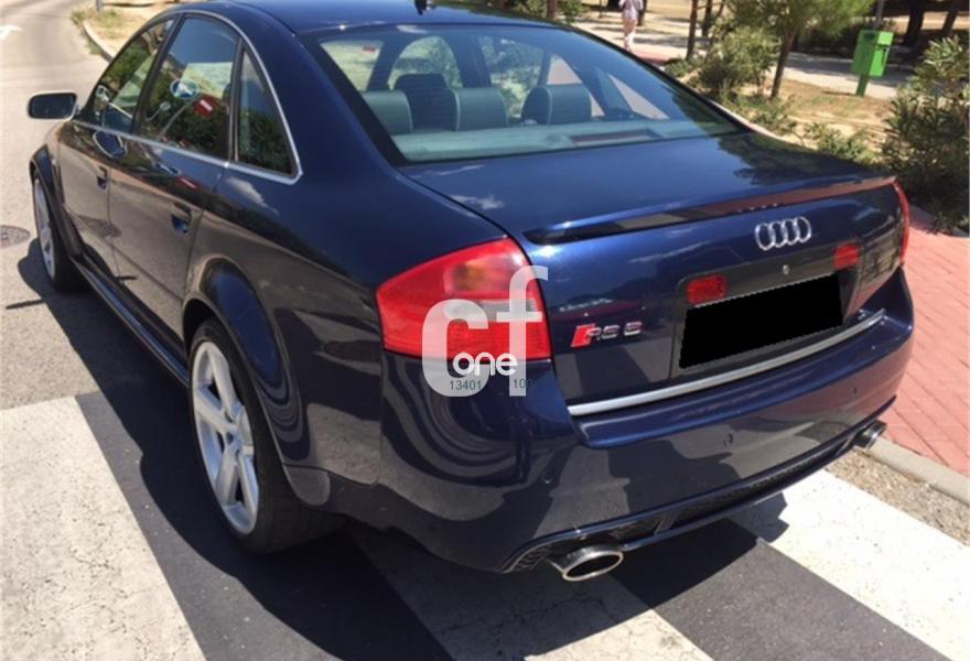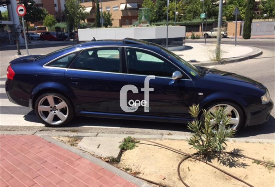 AUDI RS6, Gasolina, año 2003, 130000 kilómetros, color Azul (TOPAS BLAU MET) metalizado, precio 19750€. Alfombrillas Audi exclusive,Dekoreinlagen Alu matt gebürstet,Inserciones Audi exclusive,Stoff "High Tech"/Leder (negro),Tap cuero napa fina Audi exclusive,Tapicería cuero natural (negro),Preinstalación telf móvil manos libres,Cortina elect trasera+manual ventan tras,Aro del volante en cuero individual,Alfombrilla reversible para el maletero,Mandos en cuero Audi exclusive,Tech eléct cristal con células solares,Vol. multifuncional con mandos TIptronic,Llantas de aleación 8.5J x 18,Crist dobles anti infrarojo. ¡¡¡ IMPECABLE - AUDI RS6 - NACIONAL !!!, Mod 03, con HISTORICO de kms,