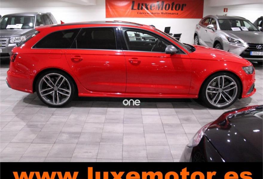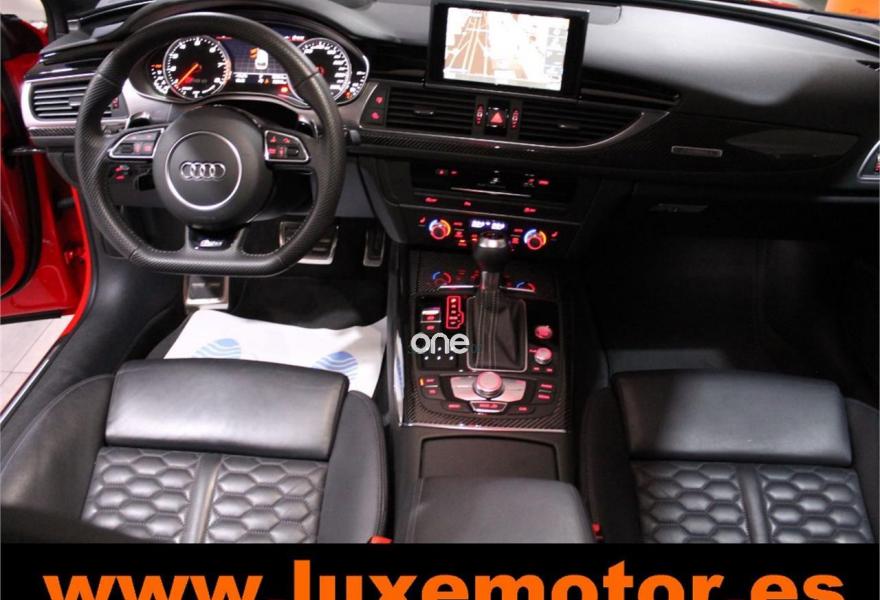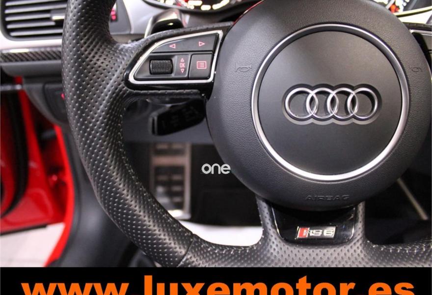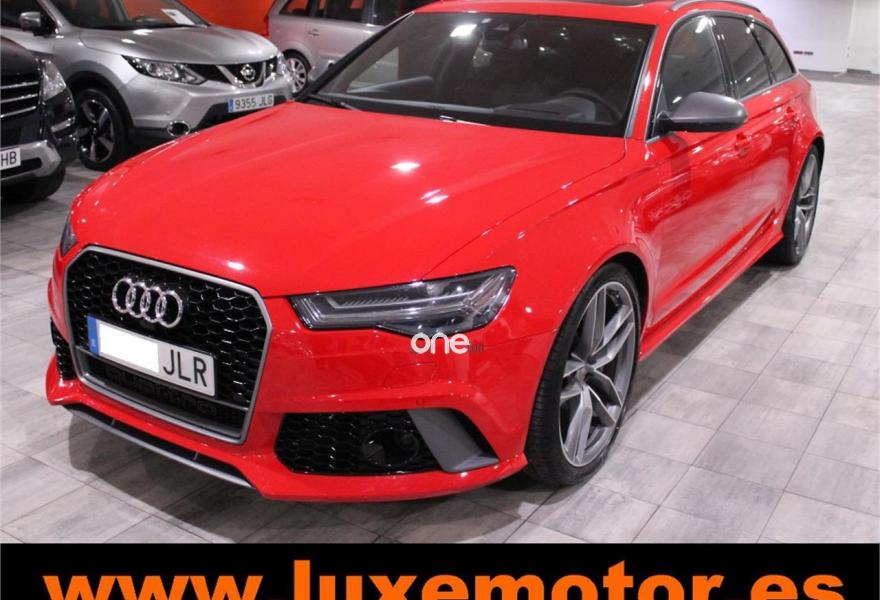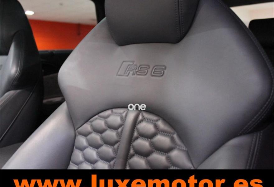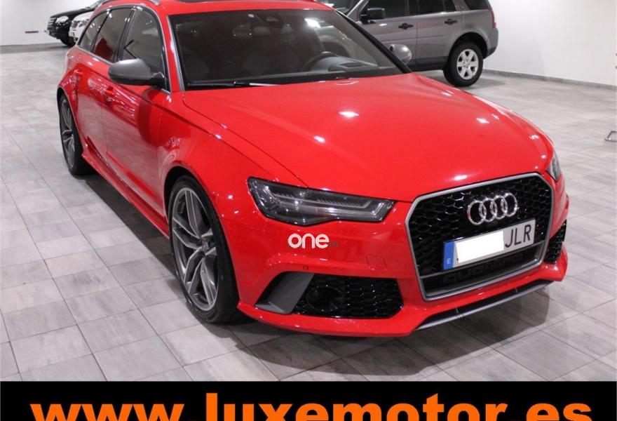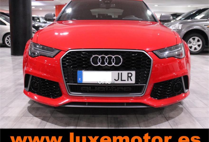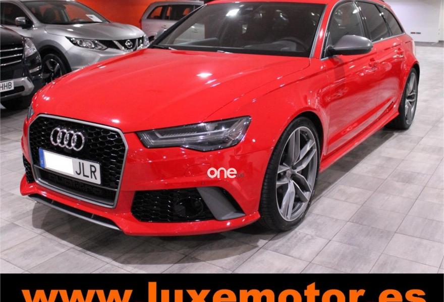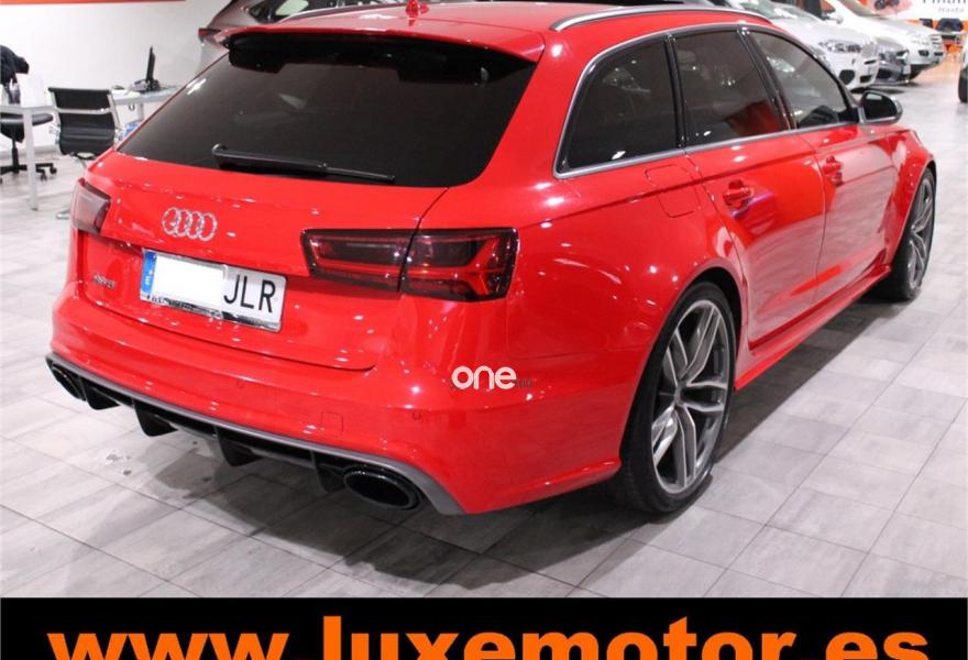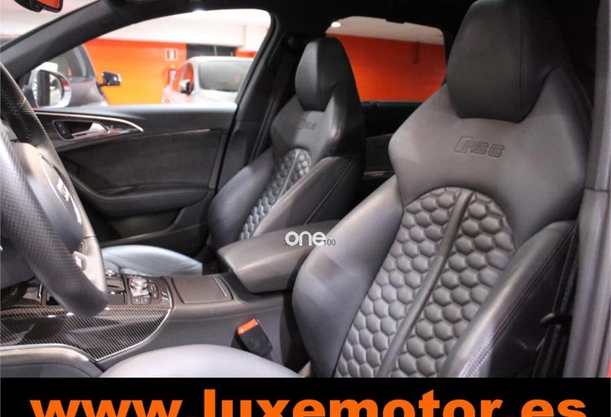 AUDI RS6, Gasolina, año 2015, 36817 kilómetros, color Rojo , precio 99990€. Asistente de aparcamiento park assist,Audi side assist con Audi pre sense rear y Audi active lane assist,Paquete de asistentes incluido Audi pre sense plus,Sistema de aviso de límite de velocidad por reconocimiento de señales,Alfombrillas con inscripción RS 6 Audi exclusive,Alfombrillas en colores especiales Audi exclusive,Asientos calefactados delanteros,Inserciones en lacado brillante negro,Moqueta y alfombrillas en colores especiales Audi exclusive,Paquete de cuero Valcona Exclusive (paquete 1),Paquete en piel Valcona (Paquete 1) con costuras en panel de abeja de Audi Exclusive,Revestimiento interior del techo en Alcantara de color negro,Tapicería en cuero Valcona RS,Audi phone box con Audi connect,Radio Digital DAB,Sistema de sonido BOSE Surround,Asistente de luces largas,Cable USB,Cierre servoasistido de las puertas,Cuero Valcona RS Negro - Techo Negro - Asientos RS,Dirección dinámica,Faros Audi Matrix LED,Interface para sistema de localización de vehículos (preinstalación),Techo panorámico eléctrico,Volante y pomo en cuero Audi exclusive,Cristales tintados oscuros,Llantas de aleación 9,5 J x 21 diseño de 5 radios en óptica de titanio mate con neumáticos 285/30 R21,Pintura personalizada Audi exclusive,Rojo Misano (efecto perla),Sistema de escape RS,Frenos cerámicos,Paquete dynamic plus,Tren de rodaje deportivo plus RS con DRC,Volante deportivo de cuero multifuncional de 3 radios con levas de cambio, calefactable,Audi active lane assist,Asistente de visión nocturna - Night vision,Control de crucero adaptativo incluye Audi pre sense front,Cuatro cámaras de entorno. LUXEMOTOR
