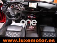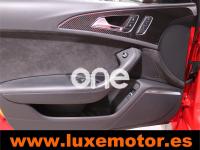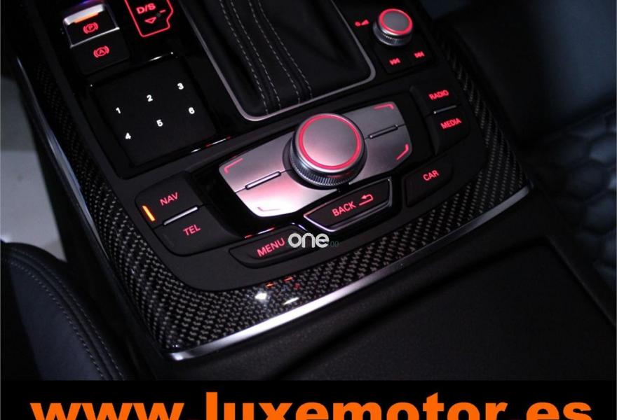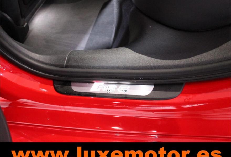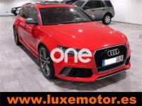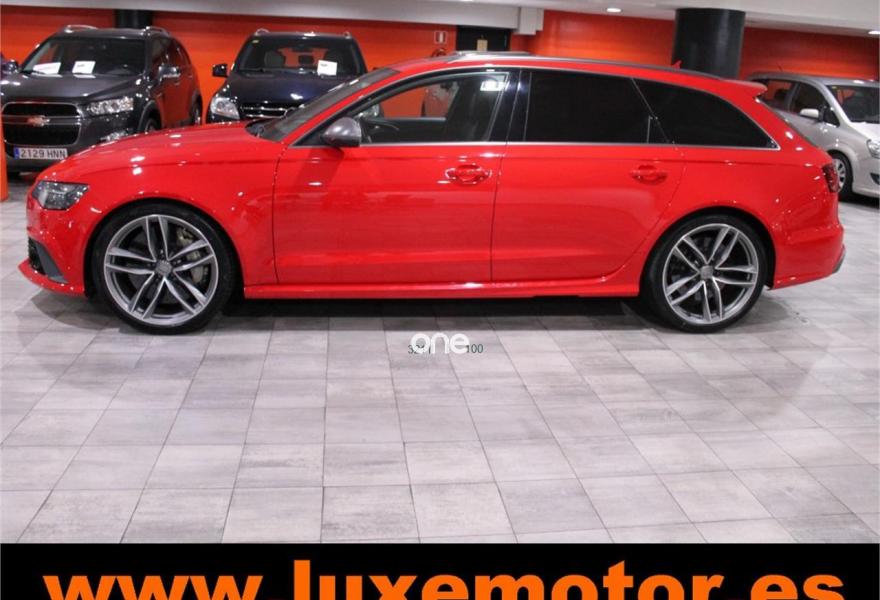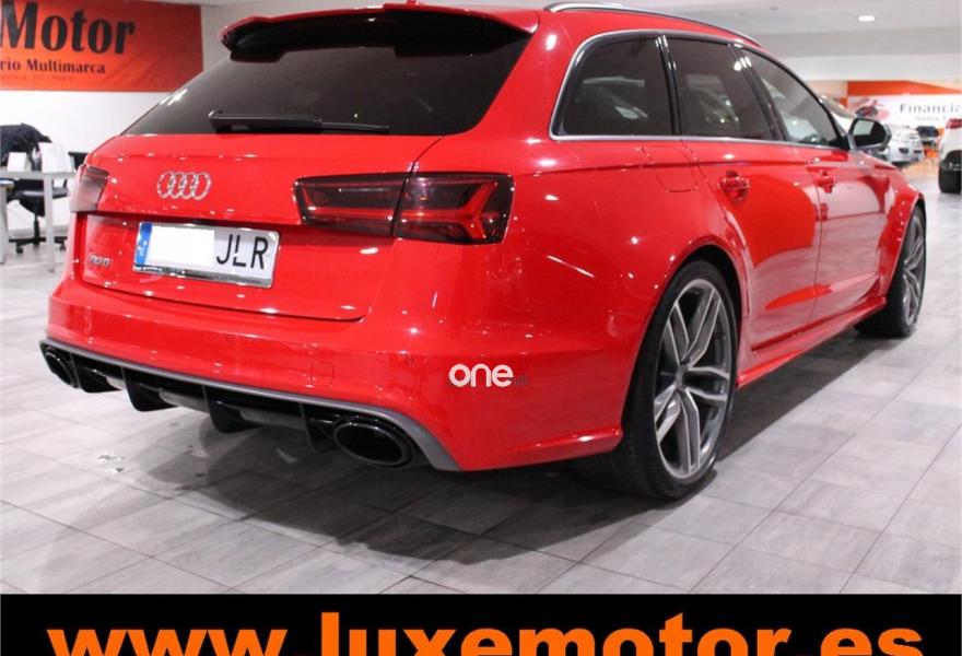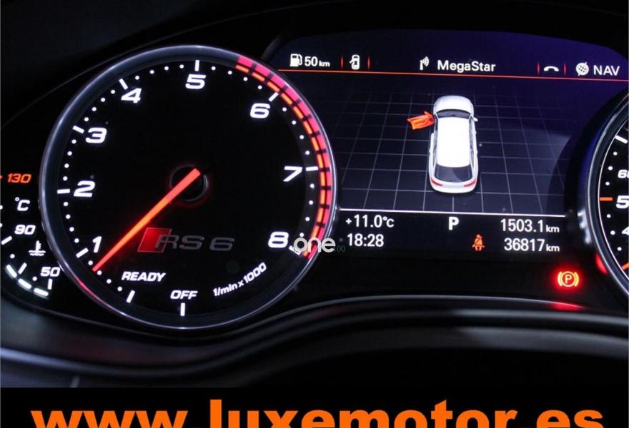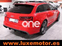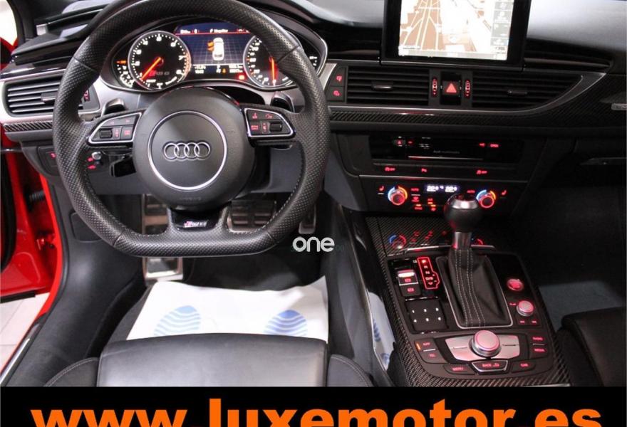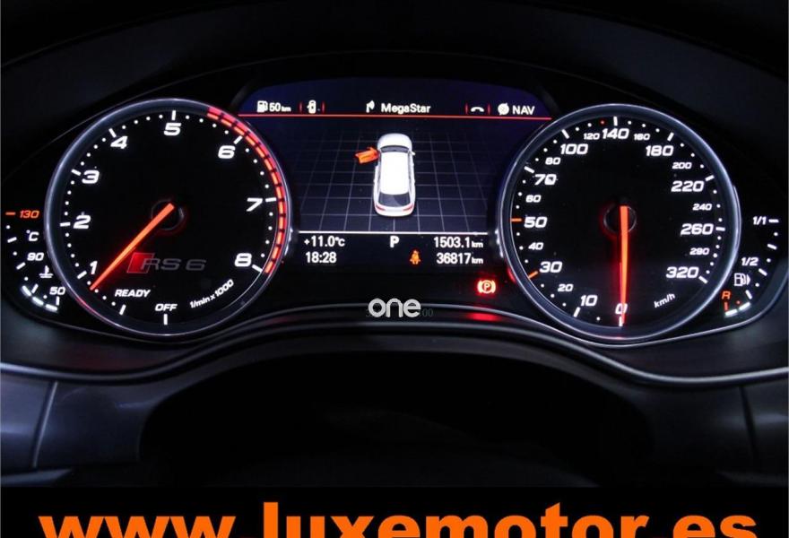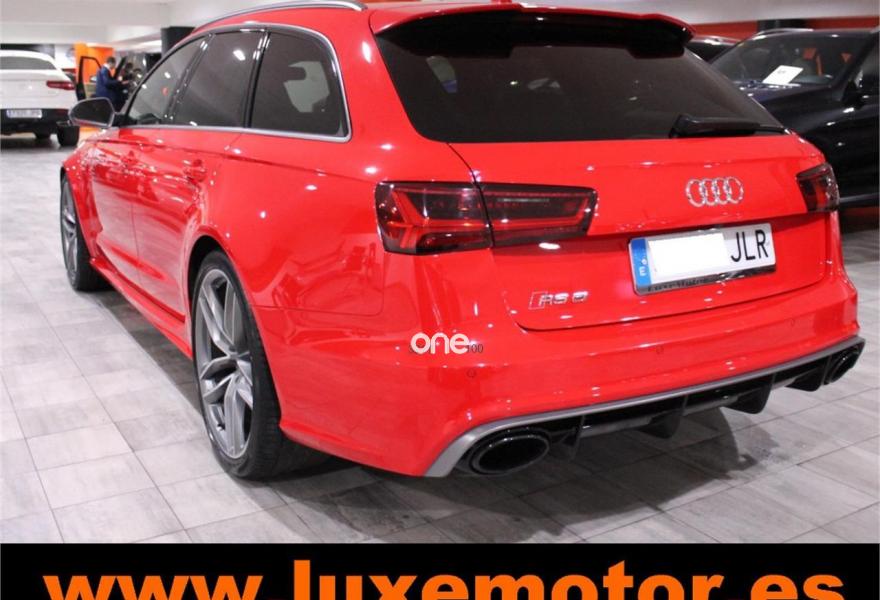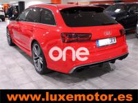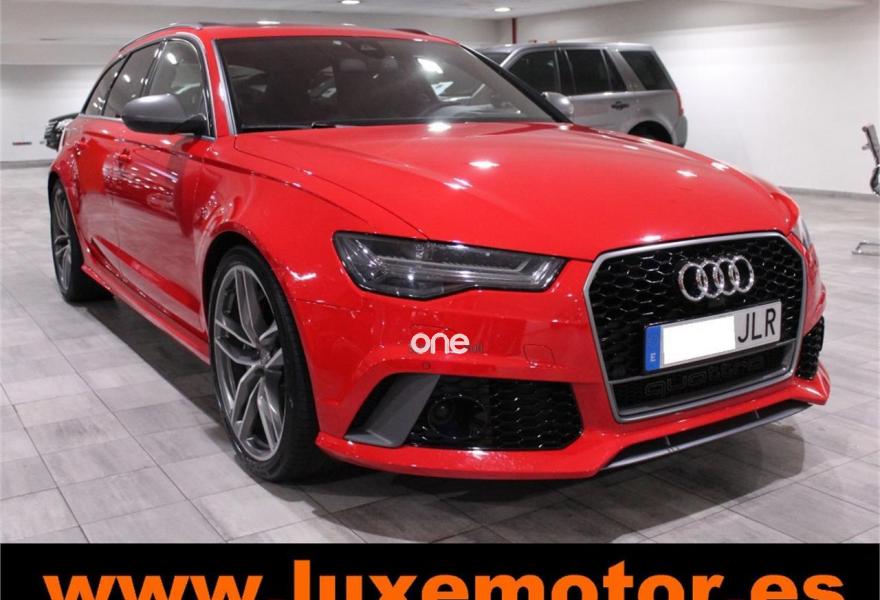 AUDI RS6, Gasolina, año 2015, 36817 kilómetros, color Rojo , precio 99990€. Asistente de aparcamiento park assist,Audi side assist con Audi pre sense rear y Audi active lane assist,Paquete de asistentes incluido Audi pre sense plus,Sistema de aviso de límite de velocidad por reconocimiento de señales,Alfombrillas con inscripción RS 6 Audi exclusive,Alfombrillas en colores especiales Audi exclusive,Asientos calefactados delanteros,Inserciones en lacado brillante negro,Moqueta y alfombrillas en colores especiales Audi exclusive,Paquete de cuero Valcona Exclusive (paquete 1),Paquete en piel Valcona (Paquete 1) con costuras en panel de abeja de Audi Exclusive,Revestimiento interior del techo en Alcantara de color negro,Tapicería en cuero Valcona RS,Audi phone box con Audi connect,Radio Digital DAB,Sistema de sonido BOSE Surround,Asistente de luces largas,Cable USB,Cierre servoasistido de las puertas,Cuero Valcona RS Negro - Techo Negro - Asientos RS,Dirección dinámica,Faros Audi Matrix LED,Interface para sistema de localización de vehículos (preinstalación),Techo panorámico eléctrico,Volante y pomo en cuero Audi exclusive,Cristales tintados oscuros,Llantas de aleación 9,5 J x 21 diseño de 5 radios en óptica de titanio mate con neumáticos 285/30 R21,Pintura personalizada Audi exclusive,Rojo Misano (efecto perla),Sistema de escape RS,Frenos cerámicos,Paquete dynamic plus,Tren de rodaje deportivo plus RS con DRC,Volante deportivo de cuero multifuncional de 3 radios con levas de cambio, calefactable,Audi active lane assist,Asistente de visión nocturna - Night vision,Control de crucero adaptativo incluye Audi pre sense front,Cuatro cámaras de entorno. LUXEMOTOR