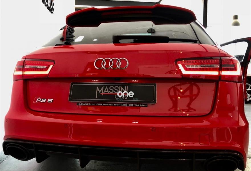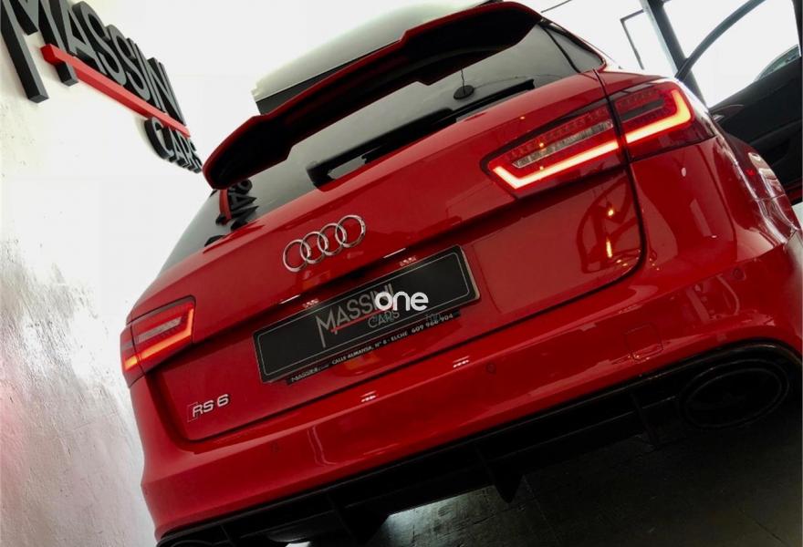 AUDI RS6, Gasolina, año 2015, 48500 kilómetros, color Rojo , precio 79999€. Asistente de aparcamiento park assist,Audi side assist con Audi pre sense rear y Audi active lane assist,Sistema de aviso de límite de velocidad por reconocimiento de señales,Paquete de asistentes incluido Audi pre sense plus,Asientos calefactados delanteros,Asientos calefactados delanteros y traseros,Asientos de confort con función memoria,Audi side assist con Audi pre sense rear,Paquete de cuero Valcona Exclusive (paquete 2),Tapicería en cuero Valcona RS,Sistema de sonido Bang Olufsen Advanced,Cargador de 6 DVD / CD en la guantera,Audi phone box con Audi connect,Asistente de luces largas,Cable USB,Cinturones de seguridad en colores especiales Audi exclusive,Cuero Valcona Negro - Techo Negro - Asientos Confort,Dirección dinámica,Ribetes para asientos de confort de Audi exclusive,Saco portaesquís,Set de fijación con guías en el maletero,Techo panorámico eléctrico,Volante en cuero Audi exclusive,Volante y pomo en cuero Audi exclusive,Paquete exterior de carbono,Sistema de escape RS,Rojo Misano (efecto perla),Head-up display,Frenos cerámicos,Paquete dynamic plus,Tren de rodaje deportivo plus RS con DRC,Audi active lane assist,Control de crucero adaptativo incluye Audi pre sense front,Cuatro cámaras de entorno. EN BREVE TODA LA INFO