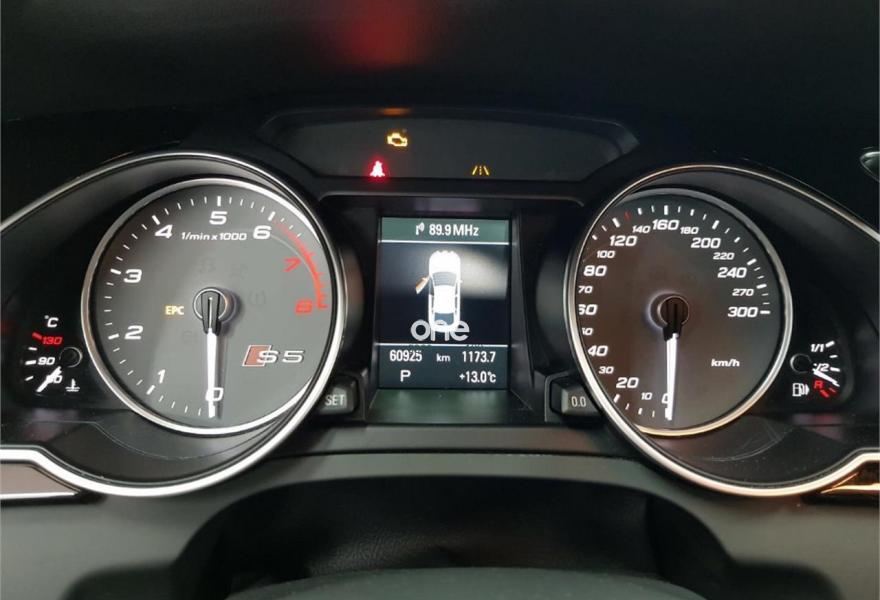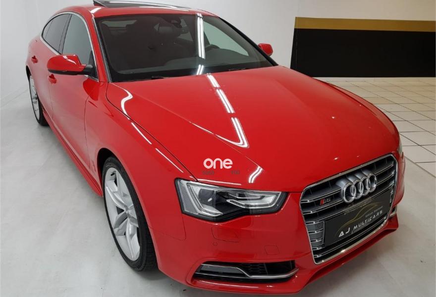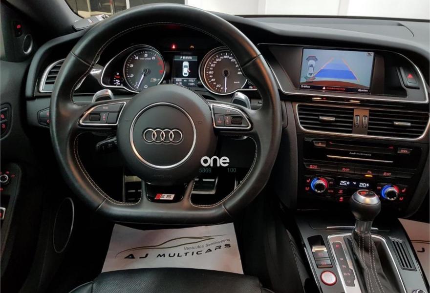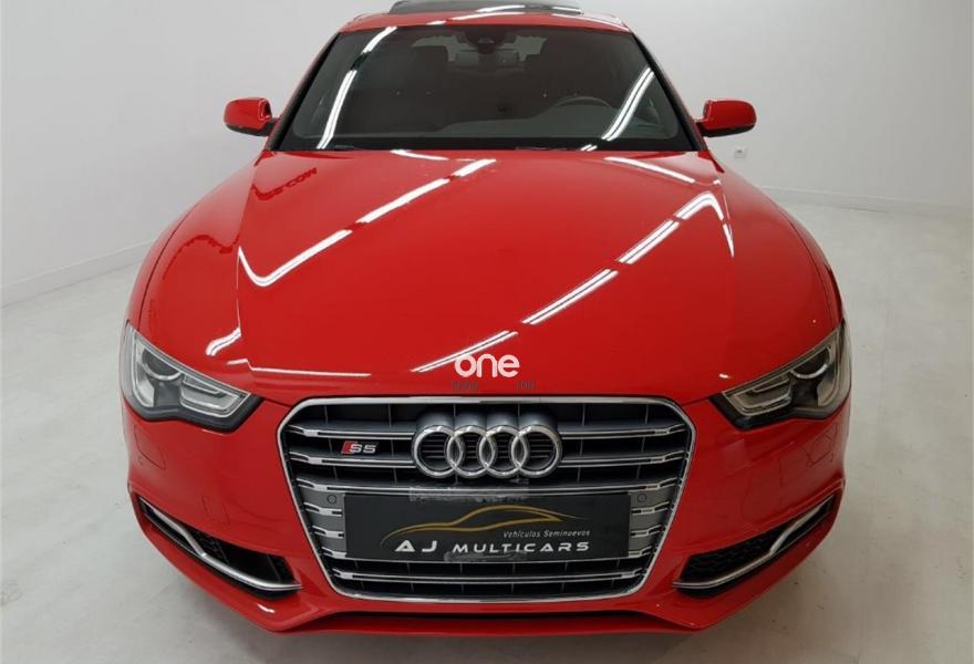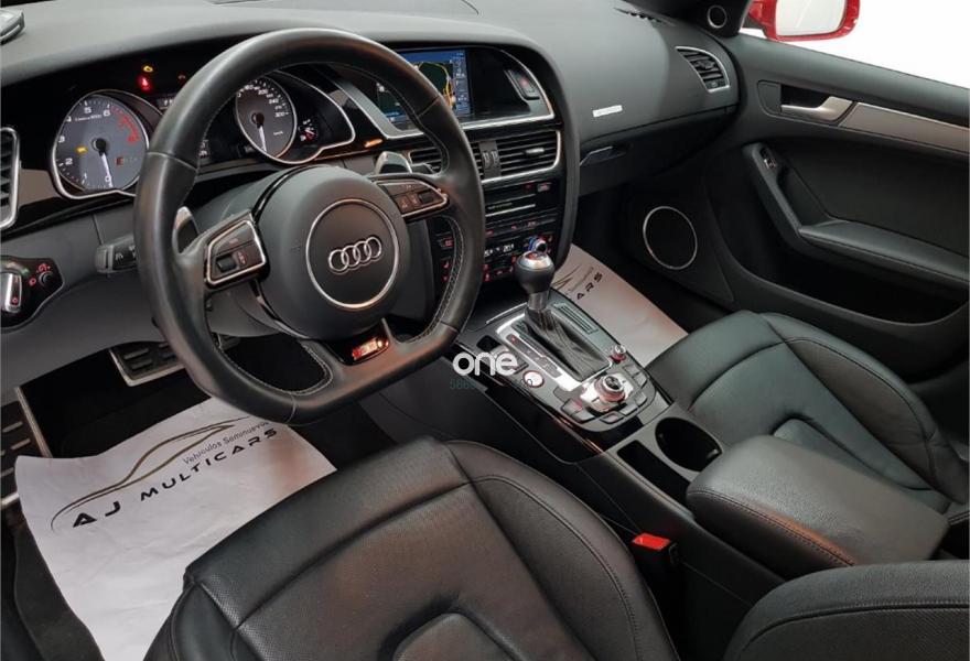 AUDI S5, Gasolina, año 2014, 65490 kilómetros, color Rojo metalizado, precio 38990€. Audi drive select,Audi side assist + Audi lane assist,Paquete de Asistencia,Receptor de TV Analógico y Digital, y Radio Digital,Alfombrilla reversible para el suelo del maletero (Velours/goma),Asientos delanteros calefactables,Asientos delanteros de confort climatizados,Inserciones en carbono Atlas,Audi Music interface,Equipo de sonido Bang & Olufsen,Instalación básica manos libres (Bluetooth) para teléfono móvil,Mando a distancia (HomeLink),MMI navegación plus,Teléfono Audi Bluetooth GSM con auricular inalámbrico en el apoyabrazos central delantero de confort,Toma de corriente de 230 Voltios,Asientos delanteros con regulación eléctrica y asiento conductor con memoria,Calefacción/Ventilación programable con mando a distancia,Climatizador de confort de 3 zonas,Control automático de velocidad (Tempomat),Dirección dinámica "dynamic steering",Elementos de control en cuero Audi exclusive,Espejo retrovisor interior antideslumbrante,Espejos retrovisores exteriores calefactables antideslumbrantes automáticamente, abatilbles eléctricamente y con función memoria,Faros inteligentes "smart beam",Luz adaptativa "dynamic adaptive light",MMI navegación,Preinstalación de teléfono móvil con kit manos libres (Bluetooth) en apoyabrazos delantero,Sistema de alarma antirrobo con protección contra remolcado,Sistema de apertura y arranque sin llave "advanced key",Techo corredizo eléctrico de cristal,Volante deportivo de tres radios multifuncional achatado en la parte inferior,Cristales tintados oscuros,Espejos retrovisores exteriores calefactables antideslumbrantes automáticamente y abatilbles eléctricamente,LLantas de aleación 8,5Jx19 diseño "S" de 5 radios paralelos "estrella" con neumáticos 255/35 R 19,Rojo Misano (efecto perla),Diferencial trasero deportivo,Volante deportivo de tres radios multifuncional con levas, achatado en la parte inferior,Audi lane assist (asistente de mantenimiento de carril),Audi side assist (asistente de cambio de carril),Airbags laterales traseros,Audi Hill hold assist,Audi parking system advanced,Audi parking system plus,Audi parking system trasero,Control de crucero adaptativo,Fijación para tres asientos infantiles ISOFIX y desactivador airbag del acompañante. OFERTA DE VERANO!!. Sujeto a financiación, consule condiciones.