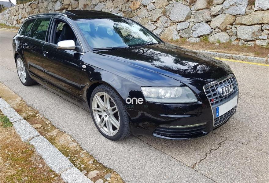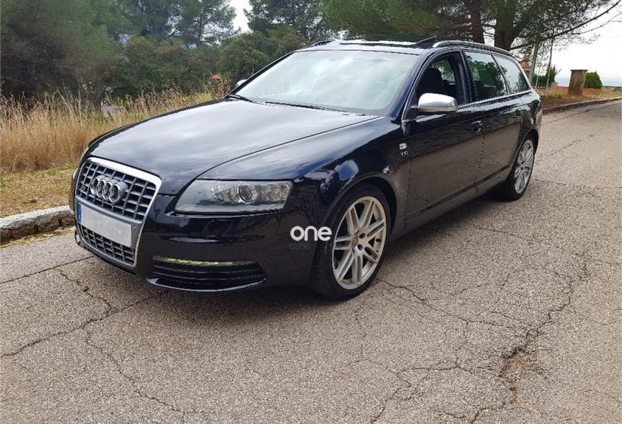 AUDI S6, Gasolina, año 2008, 183000 kilómetros, color Negro metalizado, precio 17900€. Receptor de TV analógico y digital, y radio digital,Asientos calefactables delanteros,Asientos calefactables delanteros y traseros exteriores,Inserciones en aluminio mate cepillado,Tapicería en cuero Valcona,Cuero Valcona Negro,Teléfono Audi Bluetooth GSM,Receptor de TV analógico y digital,Radio digital DAB,Mando a distancia (Home Link),Equipo de sonido BOSE surround,Audi music interface,Calefacción/Ventilación Programable con mando a distancia,Cortinilla manual en luneta posterior,Cortinilla manual en luneta posterior y en ventanillas traseras,Paquete estilo carbono Audi exclusive,Sistema de apertura y arranque sin llave "advanced key",Sistema de control por voz,Techo corredizo eléctrico de cristal,Llantas de aleación 9Jx19 diseño de radios dobles con neumáticos 265/35 R19,Negro Brillante,Pintura metalizada,Retrovisor interior y exteriores con regulación antideslumbramiento automática, exteriores plegables eléctricamente,Retrovisores exteriores plegables eléctricamente,Audi parking system advanced,Fijación para asientos infantiles ISOFIX y desactivador del airbag del acompañante. Se vende fantástico Audi S6 Avant V10 5.2 de 435cv tracción Quattro con 183.000 km. Coche de capricho en perfecto estado y con 0 desgaste. Libro de mantenimiento sellado en servicio oficial. Equipado con todos los extras posibles.