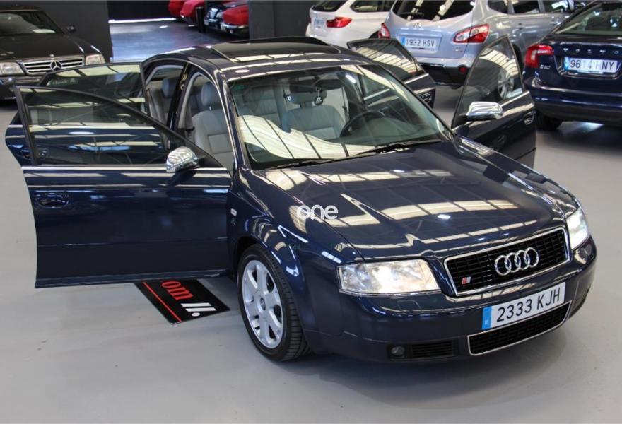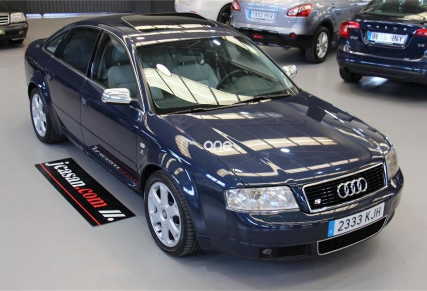 AUDI S6, Gasolina, año 2000, 138000 kilómetros, color Azul metalizado, precio 12500€. Audi S6 341 CV, unidad de colección, estado de exposición impecable , reacondicionamiento interior y exterior excelente , informe de calidad con certificación de kilometraje real y ausencia de siniestro estructural , admitimos su vehículo a cambio , vehículo matriculado el 30/03/2000, !!! procedencia nacional !!! , anterior matricula B9908WP, iva y cambio de titularidad incluido en el precio, venta exportación o profesional del sector 12.500 euros , oferta NO vinculante a la financiación, venta particular incremento de 980 euros en concepto de garantía 12 meses con cobertura europea , revision completa recien hecha, incluido kit de distribucion y neumáticos BRIGESTONE nuevos, sistema de navegación GPS, equipo Hi-Fi de alto rendimiento con pantalla tactil y entrada auxiliar BLUETOOTH AUDIO / SMARTPHONE, sistema reproductor DVD, faros de xenon , techo panorámico eléctrico, tapizado en piel, alarma, tracción QUATTRO, control de tracción ,cambio automático secuencial .