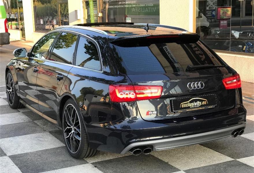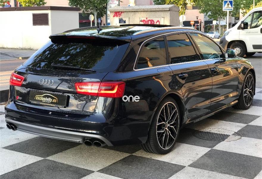 AUDI S6, Gasolina, año 2014, 61300 kilómetros, color Azul metalizado, precio 49900€. Asientos calefactados delanteros,MMI navegación plus con MMI Touch,Cortinillas manuales en luneta posterior y en las ventanas traseras,Llave de confort,Maletero con apertura y cierre eléctrico,Techo panorámico eléctrico,Azul Lunar (metalizado),Cristales tintados oscuros,Frenos cerámicos,Cámara de visión trasera. 1 Sólo propietario. Todos los mantenimientos en Audi, IVA deducible. Techo panorámico de cristal, portón eléctrico, cortinillas laterales y trasera, cristales tintados, sensores de aparcamiento delantero y trasero, cámara trasera, faros de xenón, espejos abatibles, paquete cromado exterior, llanta de 20" con neumáticos nuevos a estrenar. Frenos cerámicos, climatizador de 4 zonas. Asientos delanteros deportivos, eléctricos, con memoria y calefactados. Asientos en cuero y alcántara. Bluetooht. Suspensión deportiva adaptative air suspension, luces traseras LED, keyless-Entry, control de presión de neumáticos, audi sound system, cambio Stronic. 12 MESES DE GARANTIA. FINANCIACION SIN ENTRADA DESDE 638€.