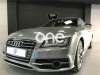 AUDI S7, Gasolina, año 2012, 139000 kilómetros, color Gris / Plata , precio 43000€. Audi side assist con pre sense rear con Audi active lane assist,Paquete de asistentes,quattro con diferencial deportivo,Sistema de aviso de límite de velocidad por reconocimiento de señales,Apertura para saco portaesquís con saco,Audi music interface,MMI navegación plus con MMI touch,Preinstalación de teléfono móvil con kit manos libres (Bluetooth),Radio Digital DAB,Teléfono Audi Bluetooth GSM online,Ajuste eléctrico del volante,Alcantara Cuero Negro - Asientos deportivos S,Cierre servoasistido de las puertas,Cinturones de seguridad en colores especiales (Audi exclusive),Dirección dinámica,Faros completos en tecnología LED,Iluminación de ambiente,Luz adaptativa "adaptive light" con regulación continua del alcance de las luces,Volante y pomo en cuero Audi exclusive,Cristales tintados oscuros,Gris Cuarzo (metalizado),Llantas de aleación 9Jx20 diseño de 5 radios paralelos Estrella (diseño S) con neumáticos 265/35 R 20,Pintura metalizada,Head-up Display,Cámara de visión trasera,Cámara delantera y trasera,Audi parking system plus,Control de crucero adaptativo con pre sense front,Visión nocturna,Asientos delanteros calefactados,Respaldo trasero abatible,Tapicería de cuero individual (paquete 1) en Alcantara/cuero,Tapicería en cuero Valcona S,Cortinilla en luneta posterior,Espejos retrovisores exteriores calefactables antideslumbrantes automáticamente, plegables eléctricamente y con función memoria,Asistente de aparcamiento park assist,Fijaciones Isofix para el asiento del acompañante con interruptor para desconectar el airbag. AUDI S7 ESPECTACULAR¡¡¡¡¡, 420 Cv V8 TURBO ABSOLUTAMENTE FULL EQUIPE inmejorable estado.