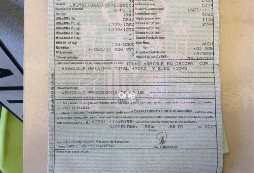 AUDI S8, Gasolina, año 2007, 174748 kilómetros, color Azul metalizado, precio 18850€. VEHÍCULO LOCALIZADO EN ALMERÍA