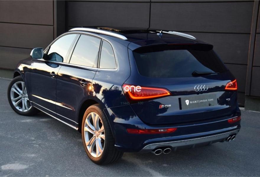 AUDI SQ5, Diesel, año 2013, 97000 kilómetros, color Azul metalizado, precio 35900€. Asientos delanteros y traseros calefactables,Banqueta trasera plus,Cúpula del cuadro de instrumentos en cuero con costuras en contraste,Inserciones en carbono Audi exclusive,Pomo de la palanca de cambio manual en aluminio,Revestimiento interior del techo en Alcantara Negro,Tapicería Cuero Napa,Audi music interface,MMI navegación plus,Cargador de CD's,Asientos delanteros con regulación eléctrica y asiento conductor con memoria,Compartimento portaobjetos bajo el suelo del maletero,Cuero Milano Negro/Marrón Castaño - Techo Negro,Espejos retrovisores exteriores antideslumbrantes automáticos, plegables eléctricamente y con función de memoria,Faros inteligentes "smart beam",Luz adaptativa "dynamic adaptive light",Set fijación para el maletero,Sistema de control de presión de los neumáticos,Techo panorámico de cristal,Azul Lunar (metalizado),Cristales tintados oscuros,Espejos retrovisores exteriores antideslumbrantes utomáticos y plegables eléctricamente,Llantas de aleación 8,5Jx20 diseño 5 radios dobles offroad con neumáticos 255/45 R20 (Audi exclusive),Pintura efecto cristal,Pintura metalizada,Airbags laterales traseros,Audi hold assist,Audi parking system APS delantero y trasero con cámara de visión trasera,Fijación para asientos infantiles ISOFIX y desactivador airbag del acompañante. AUDI SQ5 3. 0 TDI 313cv 2013. Asientos deportivos electricos con memoria y calefactables, sensores de lluvia y luces, climatizador, volante multifuncion con levas, sensores de aparcamietno delantero y trasero, faros de xenon plus (con luz de carretera automática), retrovisores laterales electricos y calefactables, sistema de navegacion (Audi MMI plus), techo panoramico de cristal, cambio automatico (con modo sport), llanta 20, Barras porta objetos transversales originales Audi a estrenar de regalo PRECIO : 38.900€ (IVA Deducible)