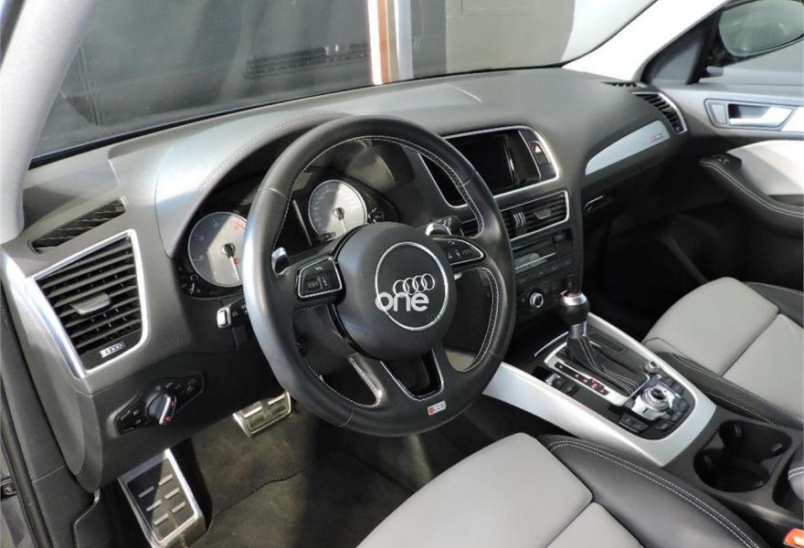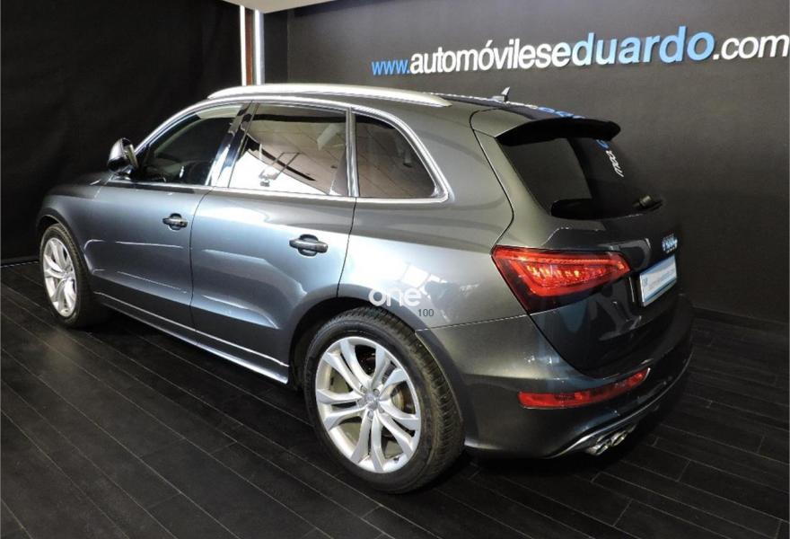 AUDI SQ5, Diesel, año 2015, 58500 kilómetros, color Gris / Plata (Gris Daytona (Perlado)) , precio 43500€. Audi parking system APS delantero y trasero,Fijación para asientos infantiles ISOFIX y desactivador airbag del acompañante,Audi lane assist (asistente mantenimiento carril),Gris Daytona (efecto perla),Llantas de aleación 8,5Jx20 diseño 5 radios dobles offroad con neumáticos 255/45 R20 (Audi exclusive),Cristales tintados oscuros,Espejos retrovisores exteriores antideslumbrantes utomáticos y plegables eléctricamente,Paquete Cuero 1,Control de crucero adaptativo,Paquete portaobjetos,Radio digital DAB,Audi music interface,MMI navegación plus,Tapicería de cuero napa Audi exclusive con asientos deportivos,Sistema de alarma antirrobo,Techo panorámico de cristal,Asientos delanteros con regulación eléctrica y asiento conductor con memoria,Dirección dinámica,Audi drive select,Cortinilla enrollable manual en ventanillas de las puertas traseras,Cuero Nappa Negro/Plata Luna - Techo Negro,Climatizador de confort de 3 zonas,Preinstalación de teléfono móvil con kit manos libres (Bluetooth),Airbags laterales traseros. Sistema Start-Stop con recuperación de energía,Asistente de salida en pendiente,Llantas de aleación 20”, Paquete cuero, Tapicería Cuero Nappa Negro/Plata Luna,Acristalamiento aislante (trasero oscuro), Molduras de estribo/protector de carga en acero inoxidable,Control de crucero adaptativo, Paquete compartimentos,Radio con recepción digital,Audi music interface, Retrovisores eléctricos/plegables, Retrovisores interior/exteriores fotosensibles,Altavoces activos, Sistema de navegación Plus con radio y MMI, Faros antiniebla,Faros de xenón direccionables...