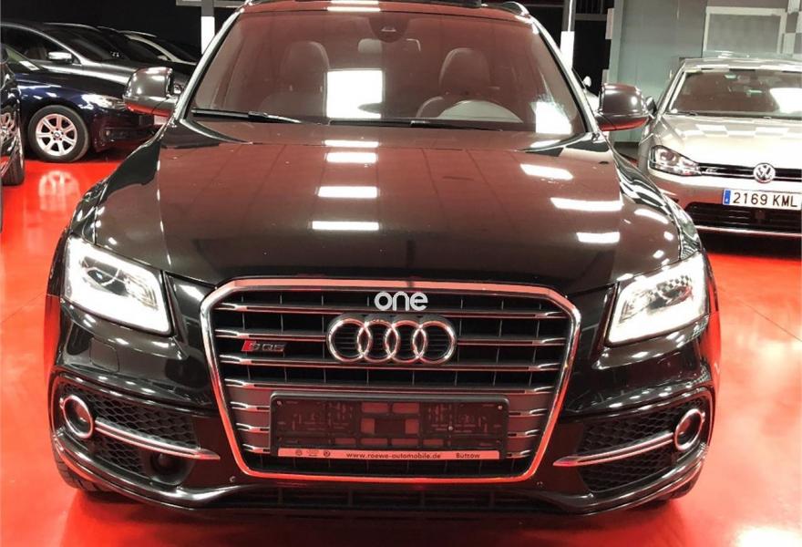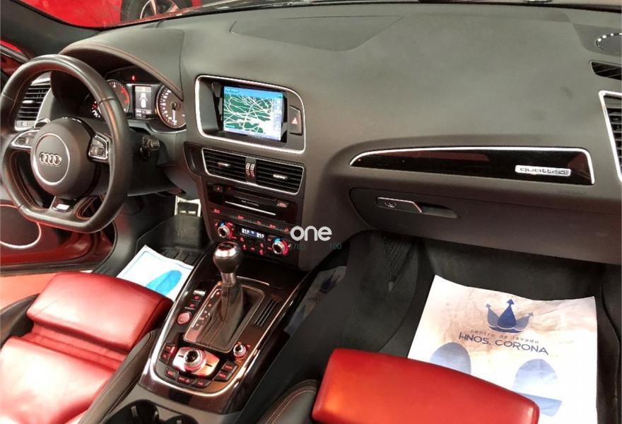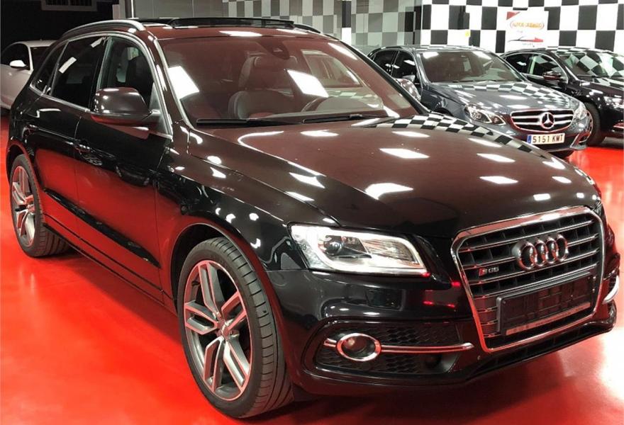AUDI SQ5, Diesel, año 2014, 160000 kilómetros, color Negro metalizado, precio 32900€. Audi drive select,Audi side assist + Audi lane assist,Paquete de Asistencia,Sistema de alarma antirrobo+llave confort,Alfombrilla reversible para el suelo del maletero (Velours/goma),Asientos delanteros con regulación eléctrica y asiento conductor con memoria,Asientos delanteros calefactables,Asientos delanteros y traseros calefactables,Cúpula del cuadro de instrumentos en cuero con costuras en contraste,Pomo de la palanca de cambio manual en aluminio,Saco portaesquís,Tapicería de cuero plus napa Audi exclusive con asientos deportivos,Audi music interface,Cargador de CD + Reproductor DVD,Equipo de sonido Bang & Olufsen,MMI navegación plus,Preinstalación de teléfono móvil con kit manos libres (Bluetooth),Radio digital DAB,Aro del volante en cuero Audi exclusive,Control de crucero adaptativo,Elementos de control en cuero Audi exclusive,Espejos retrovisores exteriores antideslumbrantes automáticos, plegables eléctricamente y con función de memoria,Faros inteligentes "smart beam",Llave de confort "advanced key",Luz adaptativa "dynamic adaptive light",Portón del maletero de accionamiento automático,Set fijación para el maletero,Sistema de alarma antirrobo,Techo panorámico de cristal,Cristales tintados oscuros,Espejos retrovisores exteriores antideslumbrantes utomáticos y plegables eléctricamente,Llantas de aleación 8,5J x 21 diseño de 5 brazos dobles, óptica titanio pulidas parcialmente con neumáticos 255/40 R21,Negro Mito (metalizado),Pintura metalizada,Pintura personalizada Audi exclusive,Tyre Mobility System,Volante deportivo multifuncional cuero en diseño de tres radios achatado en parte inferior con levas de cambio,Audi lane assist (asistente mantenimiento carril),Audi hold assist,Audi parking system APS delantero y trasero,Fijación para asientos infantiles ISOFIX y desactivador airbag del acompañante. Vehiculo en perfecto estado general, muy cuidado con KMS CERTIFICADOS y revisiones en servicio oficial, acabado individual, interior exclusivo en cuero rojo y negro, asientos eléctricos, calefactados, deportivos, con memoria y logo SQ5 bordado, sensor de proximidad distronic, sensor de cambio de carril, drive select, navegador profesional, sistema de sonido bang y olufsen, asientos traseros calefactados, porton trasero eléctrico, sistema de escapes con cambio de sonido, faros inteligentes bi-xenón, llantas 21", techo panorámico de cristal, apertura y arranque sin llaves, volante deportivo achatado con levas de aluminio, salpicadero con bordados rojos, cambio automatico y muchos detalles mas...... muy exclusivo........12/2013, garantizado.