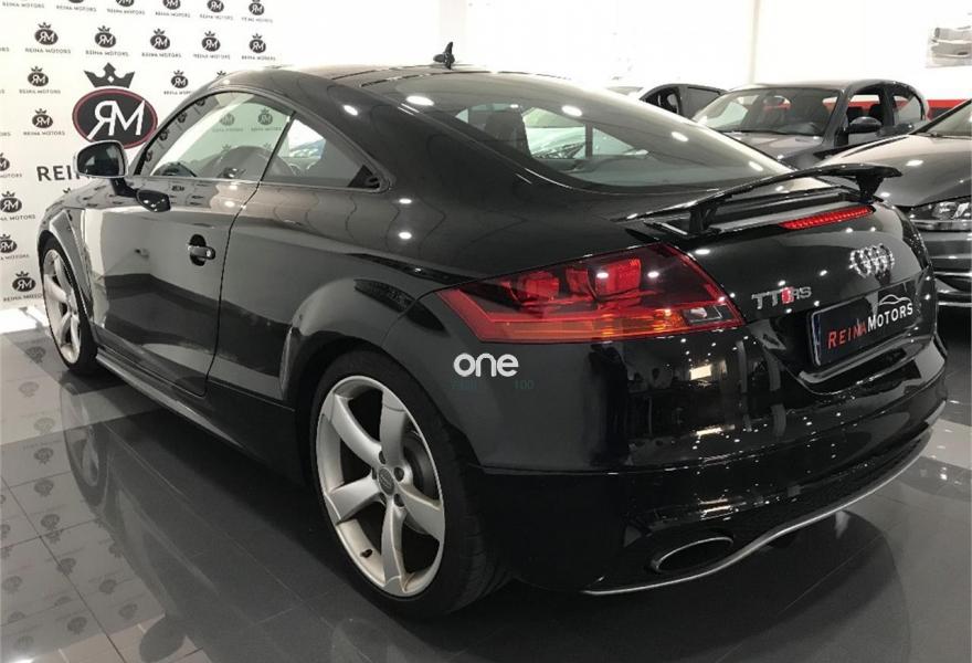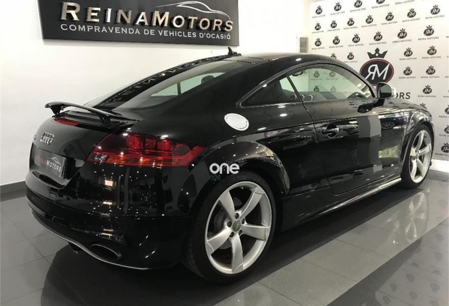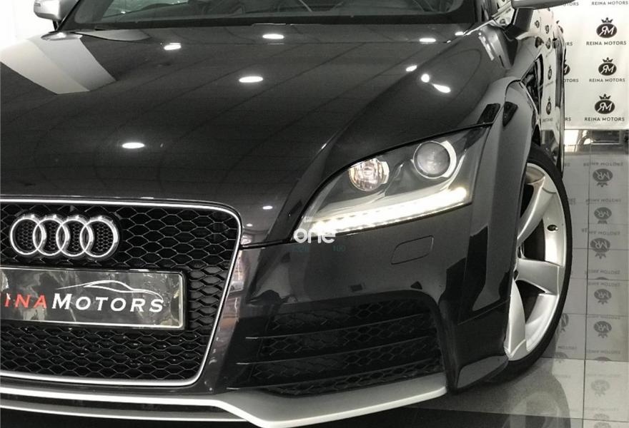 AUDI TT RS, Gasolina, año 2011, 160000 kilómetros, color Negro metalizado, precio 28990€. Tubos de escape deportivos,Asientos delanteros calefactables,Tapicería en cuero Napa fina,Sistema de navegación plus con DVD,Sistema de sonido surround BOSE,Cuero Napa seda Negro (techo negro),Elementos de control en cuero - colores especiales Audi Exclusive,Espejo retrovisor interior antideslumbrante automático con sensor de luces y lluvia,Faros adaptativos,Paquete exterior en estetica de aluminio mate,Volante en cuero Audi exclusive,Espejos retrovisores calefactables y abatibles eléctricamente,Llantas aleación ligera 9J x 19 diseño Rotor de 5 brazos color titanio con neumáticos 255/35,Negro Pantera (efecto cristal).