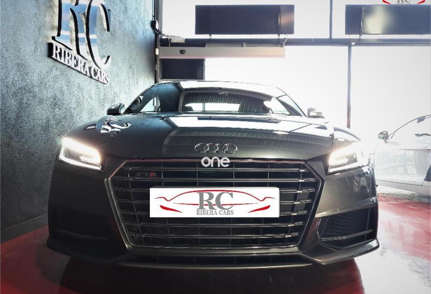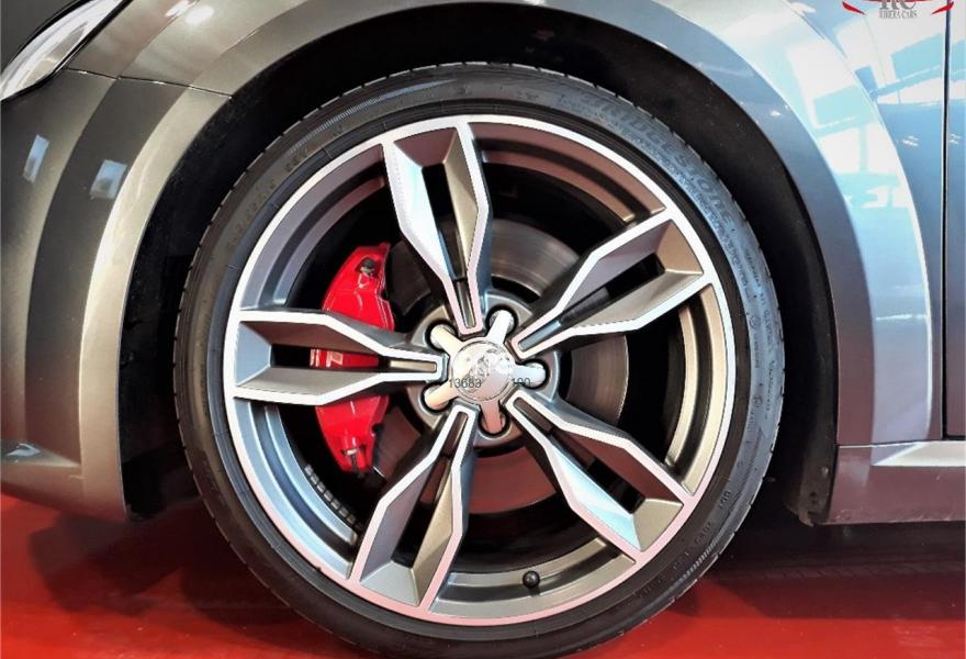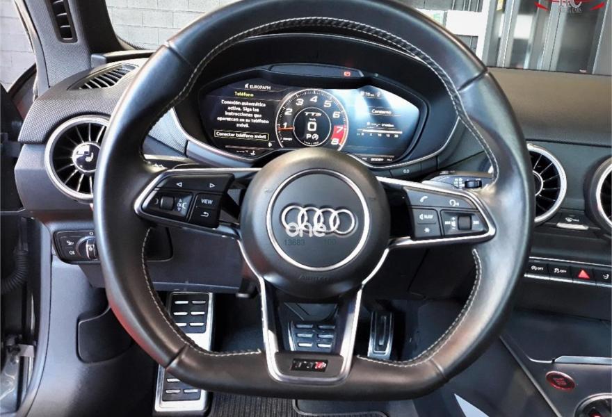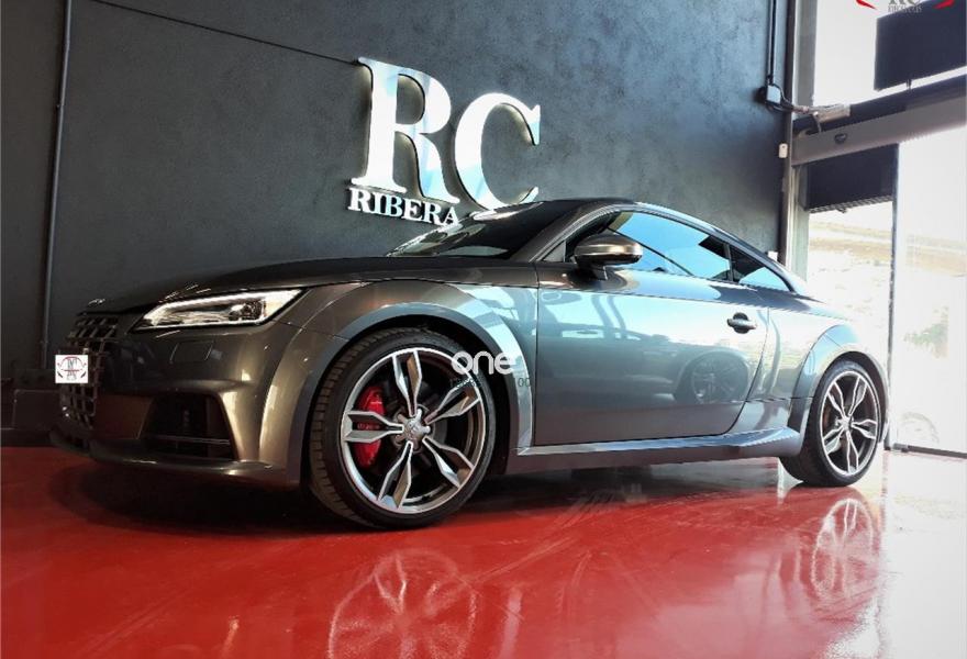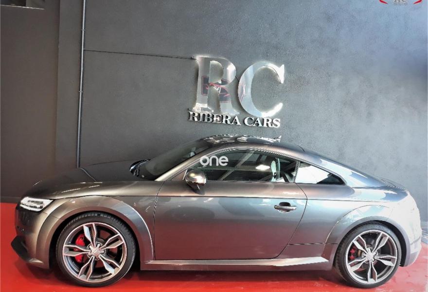 AUDI TTS, Gasolina, año 2015, 99000 kilómetros, color Gris / Plata , precio 39990€. Apoyabrazos central delantero,Asientos delanteros calefactables,Bang & Olufsen sound system,MMI navegación plus con MMI Touch,Alcántara/Cuero S line Negro,Audi connect,Faros Audi Matrix LED,Pinzas de freno pintadas en rojo,Volante deportivo multifunción de tres radios achatado con levas en los motores S tronic,Gris Daytona (efecto perla),Pintura efecto perla,Pintura gris Daytona Audi exclusive,Audi parking system (trasero),Llantas de aleación 9J x 19 diseño de 5 radios dobles con neumáticos 245/35 R 19. AUDI TTS COUPE 2.0 TFSI QUATTRO STRONIC SLINE 310CV en color exterior gris "Daytona" efecto perla con el interior completamente deportivo en cuero-alcántara negro SL.