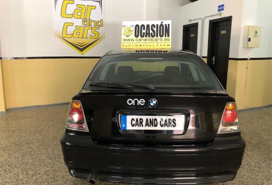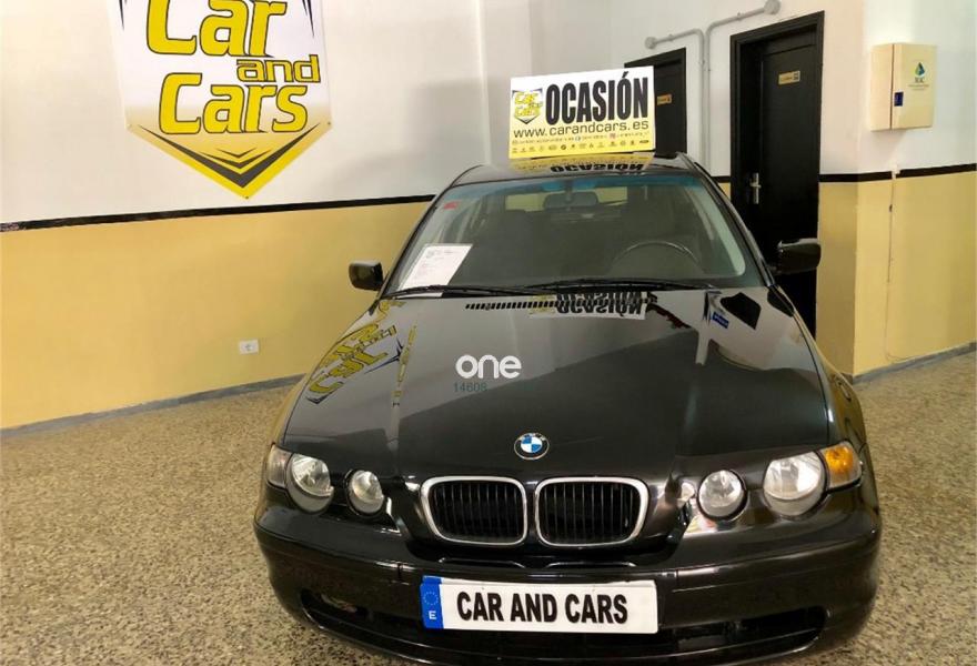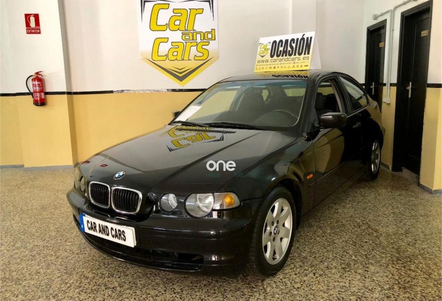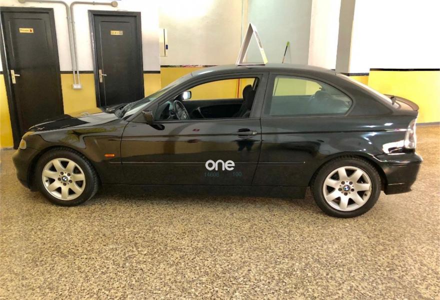 BMW Compact, Gasolina, año 2003, 140000 kilómetros, color Negro metalizado, precio 6999€. Apoyabrazos delantero,Soporte lumbar asientos delanteros,Tapicería tela Laser/Alcántara,Ordenador de a bordo 316/318,Reproductor de CD,Sistema de altavoces Hi-Fi 316/318,Franja verde en el parabrisas,Intermitentes blancos (Individual),Volante de cuero con airbag,Llantas aleación radios estrella (44),Pintura metalizada,Triángulo de emergencia y botiquín.