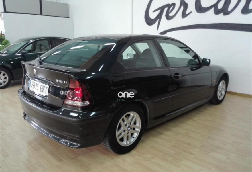BMW Compact, Gasolina, año 2005, 175000 kilómetros, color Negro metalizado, precio 3995€. Vehículo a estrenar en perfecto estado,km garantizados, nacional, revisado y garantizado. financiación a su medida. garantía de hasta 2 años. aceptamos su vehículo como parte de pago. equipamiento: velocidad de crucero, elevalunas eléctricos, climatizador, asientos de cuero, retrovisores eléctricos, volante de cuero multifuncion, isofix, ordenador abordo, 6 airbag, control de tracción. . . estamos en Av De La Industria 61, Humanes de Madrid. GERCARS. COM.