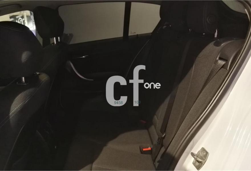 BMW Serie 1, Diesel, año 2015, 38400 kilómetros, color Blanco (AlpineweissIII) metalizado, precio 27300€. Llamada de emergencia inteligente,Paquete de servicios ConnectedDrive,Paquete Essential Plus M-Sport Edition,Paquete Innovación,Paquete Visibilidad,Asientos deportivos para conductor y acompañante con respaldo regulable en anchura eléctrica,Calefacción de los asientos delanteros,Molduras de acentuación de color negro de brillo intenso,Molduras interiores Aluminium con rectificado longitudinal fino,Reposacabezas traseros abatibles,Sistema de carga de objetos largos,Soporte lumbar en asientos delanteros,Tela 'Track',Dispositivo manos libres con interfaz USB,Intercambiador DVD de 6 discos,Sistema de altavoces HiFi,Sistema de navegación Professional,Telefonía de confort con conexión ampliada para smartphone,Caja de cambios Steptronic,Acceso confort,Asistente de luz de carretera,Control de crucero con función de frenado,Dirección deportiva variable,Dispositivo de alarma,Faros xenón,Entretenimiento online,Información BMW Online ampliada,Lavado de faros,Paquete de iluminación,Radio BMW Professional,Real Time Traffic Information,Red de separación del maletero,Remote Services,Servicios ConnectedDrive,Servotronic,Shadow Line de brillo intenso BMW Individual,Techo de cristal, eléctrico,Volante deportivo de cuero,Volante deportivo de cuero en negro,TeleServices,Tela 'Move' Anthrazit,16", llantas de aleación ligera de radios en V (estilo 411),Alpinweiß (sólido),Acristalamiento de protección solar,Carcasas de los espejos retrovisores en blanco,Espejos retrovisores interior y exteriores con ajuste automático antideslumbramiento,Pintura metalizada,Sport Line,Tren de rodaje de serie,Control de distancia en aparcamiento (PDC) delante y detrás,Asistente de aparcamiento. BMW 118 d 143Cv 02/2015