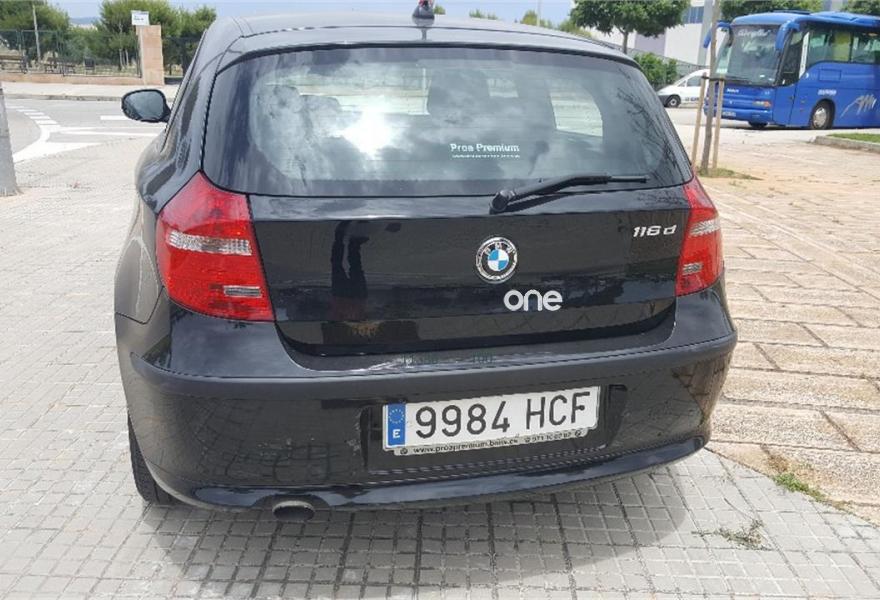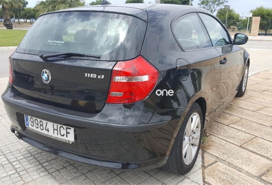 BMW Serie 1, Diesel, año 2011, 100000 kilómetros, color Negro metalizado, precio 8500€. Alfombrillas de velours,Reposabrazos delantero,Reposacabezas traseros abatibles,Tela 'Network',Conexión USB audio,Dispositivo manos libres,Radio BMW Professional,Asistente de luz de carretera,Paquete de iluminación,Retrovisor interior antideslumbramiento,Volante multifunción,16", llantas de aleación ligera de radios dobles (estilo 222),Black Sapphire (metalizado),Espejos retrovisores antideslumbramiento,Pintura metalizada,BMW Service Inclusive - 5 años/100.000 km,Sistema de fijación para asiento infantil ISOFIX delante,Triángulo de emergencia con equipo de primeros auxilos. coche nacional, unico dueño, matriculado en marzo del 2011, revisiones en la casa oficial, muy bajo consumo, itv hasta 04.2019, discos de frenos y pastillas a las 4 ruedas nuevos. motor diesel, cilindrada 1995cmc, 116CV. Llamar siempre antes al tlf. .