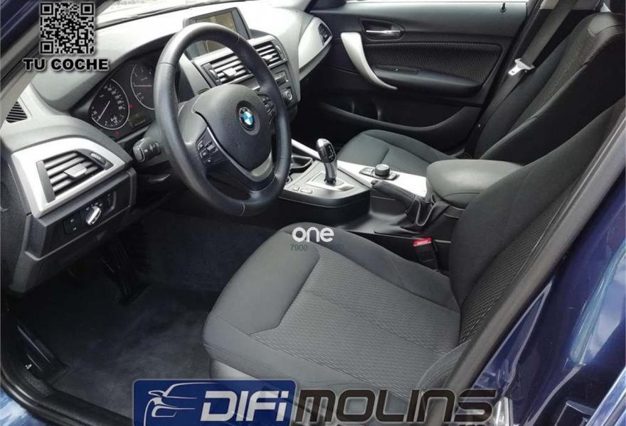BMW Serie 1, Diesel, año 2014, 66107 kilómetros, color Azul (600417104) metalizado, precio 17500€. Molduras de acentuación Oxidsilber mate,Tela 'Track',Cambio automático,Dispositivo de alarma,Lavado de faros,Control de distancia en aparcamiento (PDC) delante y detrás,Pintura metalizada,Tela 'Move' Anthrazit,Radio BMW Professional,Paquete de iluminación,Faros xenón,Acceso confort,Paquete Visibilidad,Dispositivo manos libres con interfaz USB,16", llantas de aleación ligera de radios en V (estilo 411),Control de distancia en aparcamiento (PDC) detrás,Asistente de aparcamiento. ····· OFERTA SUJETA A FINANCIAR 10.000€. PVP SIN FINANCIAR: 18.500€ ····· MOTOR 2.0D 143CV ····· CAMBIO AUTOMÁTICO DE 8 VELOCIDADES ····