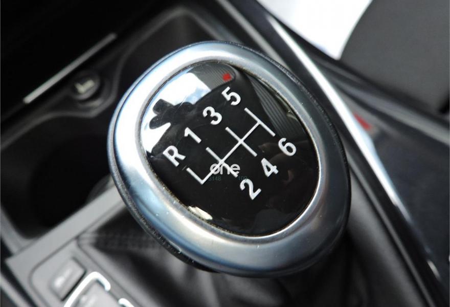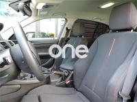 - Asientos con tapicería de tela en color gris con costuras rojas