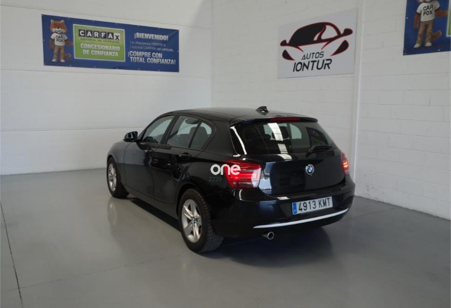 BMW Serie 1, Diesel, año 2013, 127320 kilómetros, color Negro (URBAN) metalizado, precio 13900€. Paquete Cruise,Paquete Business (no para clientes particulares),Paquete Visibilidad,Calefacción de los asientos delanteros,Cuero 'Dakota',Molduras interiores Aluminium Hexagon,Conexión para dispositivos Bluetooth y USB,Sintonizador DAB,Acceso confort,Faros xenón,Dispositivo de alarma,Lavado de faros,Interfaz de música para smartphones,Volante deportivo de cuero,Sensor de lluvia,Pintura metalizada,16", llantas de aleación ligera de radios en V (estilo 411),Tren de rodaje de serie,Control de distancia en aparcamiento (PDC) detrás,Desactivación del airbag del acompañante,Neumáticos con funcionamiento en caso de avería. El coche esta en perfecto estado.Tiene 12 MESES DE GARANTIA , libro de revisiones al dia,km garantizados por escrito y certificados.Climatizador bizonal,asientos de cuero negro,asientos calefactables ,faros bi-xenón,control de velocidad,elevalunas eléctricos,espejos eléctricos ,esp,radio cd con entrada auxiliar y usb,ordenador de a bordo,apoyabrazo,bluetooth,volante multinacional,sensores de aparcamiento. Mejor Verlo.Se acepta prueba mecanica .ACEPTAMOS VEHICULO COMO PARTE DE PAGO. TODOS NUESTROS VEHICULOS SE ENTREGAN TOTALMENTE REVISADOS Y KILOMETROS CERTIFICADOS..