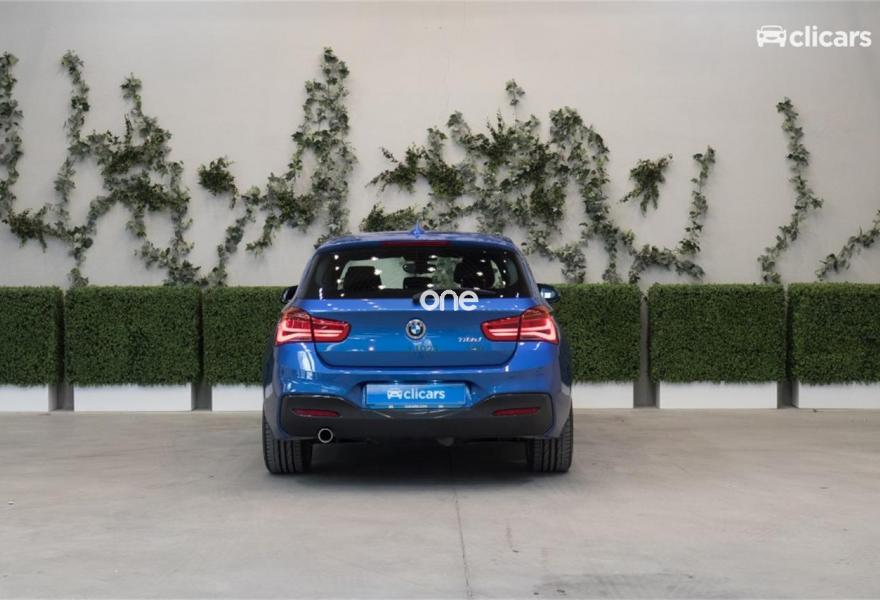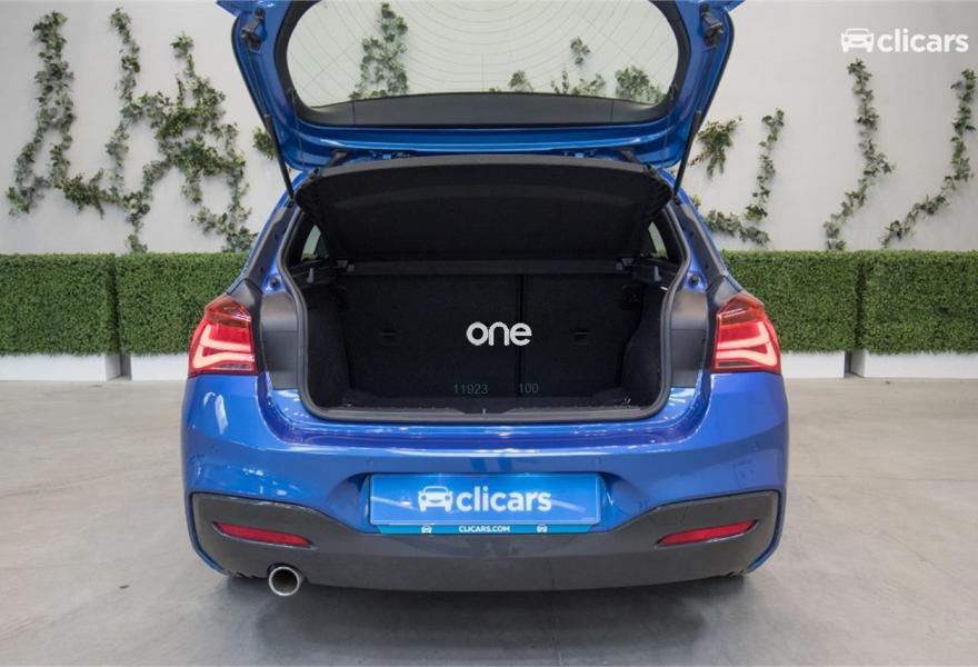 BMW Serie 1, Diesel, año 2017, 2194 kilómetros, color Azul metalizado, precio 20290€. Paquete Business (no para clientes particulares),Asientos deportivos para conductor y acompañante,Tela 'Hexagon'/Alcántara Anthrazit/Schwarz,Sistema de navegación Business,Climatizador,Control de crucero con función de frenado,Paquete deportivo M,Shadow Line de brillo intenso BMW Individual,Volante M de cuero,Suspensión deportiva M,Estoril Blau (metalizado),17", llantas de aleación ligera M de radios en estrella (estilo 383 M) con neumáticos de diferentes dimensiones,Asistente de aparcamiento,Control de distancia en aparcamiento (PDC). Clicars: Nº1 en Europa en venta de coches online