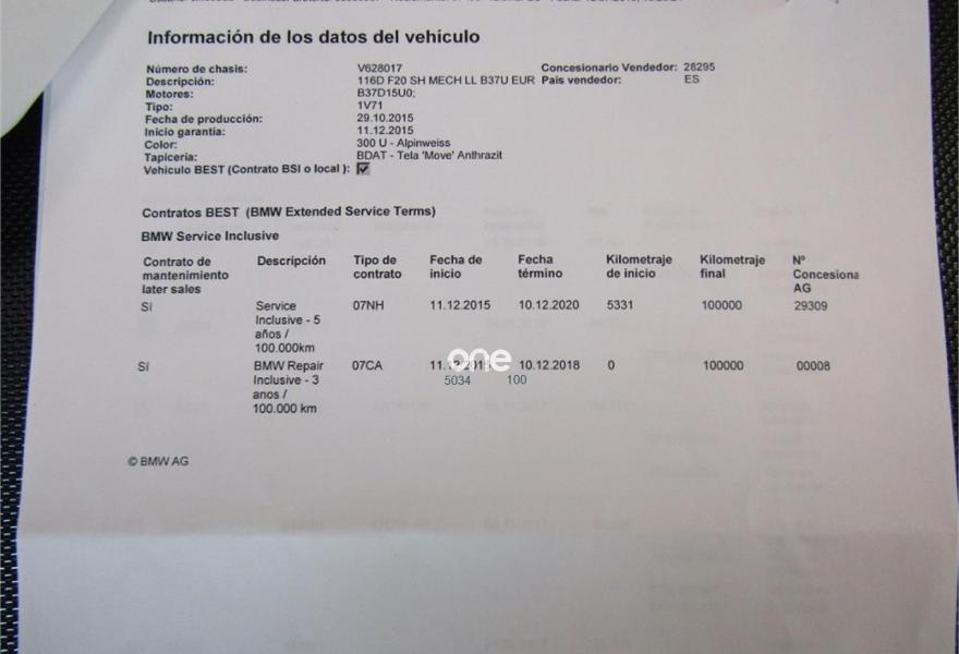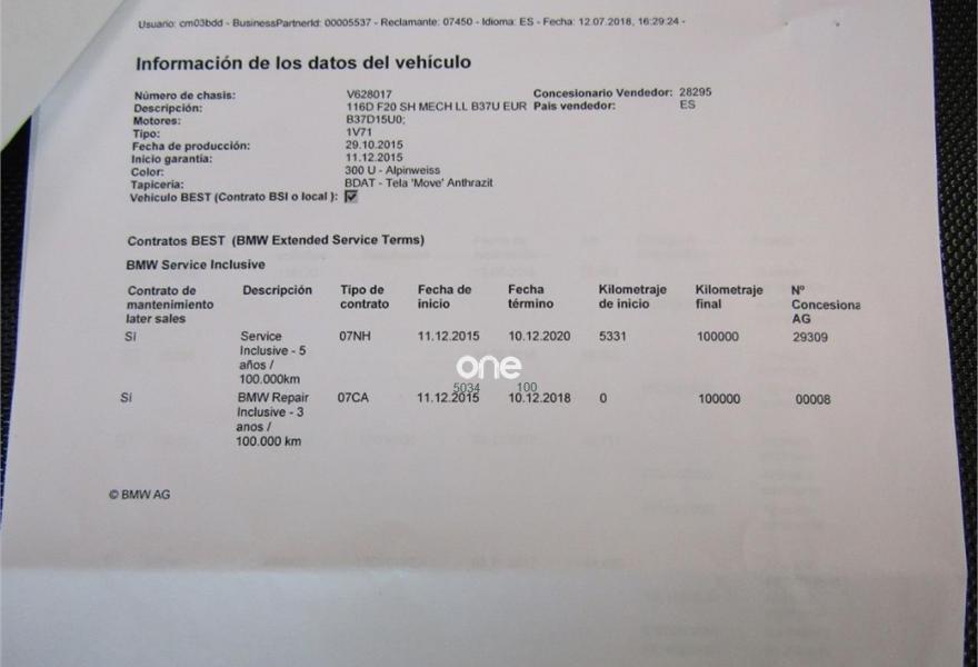 BMW Serie 1, Diesel, año 2016, 55000 kilómetros, color Blanco , precio 16300€. Tela 'Corner' Anthrazit/acentuación Rot/Schwarz,Sistema de navegación Business,Climatizador,Faros LED autoadaptables,Servicios ConnectedDrive,Volante deportivo de cuero en negro,Espejos retrovisores interior y exteriores con ajuste automático antideslumbramiento,Acabado Advantage,Control de distancia en aparcamiento (PDC) trasero,Juego de reparación de neumáticos. VEHICULO EN PERFECTO ESTADO++NACIONAL++LIBRO COMPLETO E HISTORIAL COMPLETO EN LA MARCA Y CERTIFICADO+