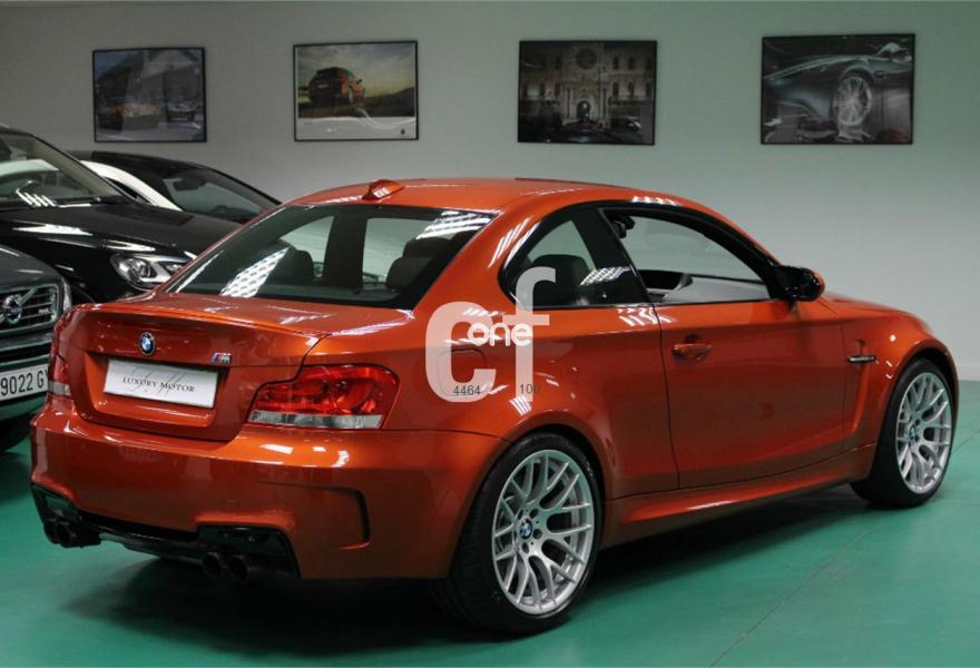 BMW Serie 1, Gasolina, año 2011, 66000 kilómetros, color Naranja metalizado, precio 43900€. Alfombrillas de velours,Calefacción de los asientos delanteros,Paquete de compartimentos,Portabebidas insertable,Soporte lumbar en los asientos delanteros,Conexión USB audio,Internet,Paquete Comunicación,Radio BMW Professional,BMW Apps,BMW TeleServices,Control por voz,Cuero 'Boston' Schwarz,Luces autoadaptables,Paquete de iluminación,Retrovisor interior con ajuste automático anti-deslumbramiento,Sensor de lluvia y accionamiento automático de las luces de cruce,Asientos eléctricos con soporte lumbar,Espejos retrovisores interior y exteriores con ajuste automático anti-deslumbramiento,Pintura metalizada,BMW Service Inclusive - 5 años/100.000 km,Control de distancia en aparcamiento (PDC) detrás,Triángulo de emergencia con equipo de primeros auxilos. "" BMW 1M COUPE 340cv "" VEHÍCULO NACIONAL, UN SOLO PROPIETARIO, LINEA DE ESCAPE COMPLETA AKRAPOVIC EVOLUTION CARBONO VALORADA EN 5.600€ RECIEN INSTALADA, CONTRATO BMW MANTENIMIENTOS GRATUITOS HASTA 2016. Equipamiento: Pintura Especial M Valencia Orange, Faros Bi-xenon con Lavafaros, Sensores de Aparcamiento PDC, Regeneración de la Energía de Frenado, Asientos Eléctricos con Memoria, Sensor de Lluvia y Luces, Paquete de Iluminación, BMW Teleservices, Asientos Calefactados, Sistema de Navegación Professional, Reposabrazos Delantero, Regulador de Velocidad, Control Combox, Entradas Auxiliares de Audio, Acceso a Internet BMW, Control por Voz, Teléfono Bluetooth, Sistema de Audio "Harman-Kardon", Servotronic, Volante Deportivo Multifunción, Asientos Deportivos, Molduras Interiores BMW Individual en Alcántara, ISOFIX, Botón M-Drive, Llanta 19" 359M, Paquete de Compartimentos, Retrovisores Eléctricos Abatibles, 4 Neumáticos Nuevos Michelin, 2 Juegos de Llaves, Etc.. SE ACEPTA PRUEBA MECÁNICA.