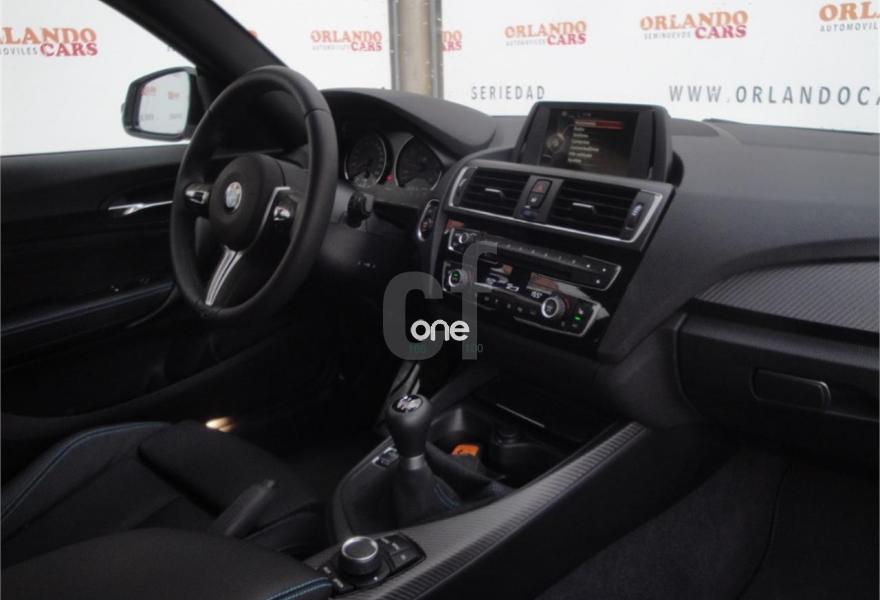 BMW M2 Vehiculo Nacional · Pvp Sujeto · Direccion asistida · Volante multifuncion · Climatizador Bizona Automatico · Pantalla central multinformacion · Faros Bixenon con Leed diurnos · Asientos térmicos delanteros · Sensores de parking · Espejos regulable electricos · Control de velocidad · Efficiencins Confort-Sport de BMW · Kit M INTERIOR · Tapiceria Piel · Llantas 245-35-r-19 delante · -265-35-r-19 detrás · Modelo totalmente Impecable · 5 años de mantenimiento Oficial en BMW Service · Admitimos noche como parte de pago · Sábados de 10 a 14 Abierto ·