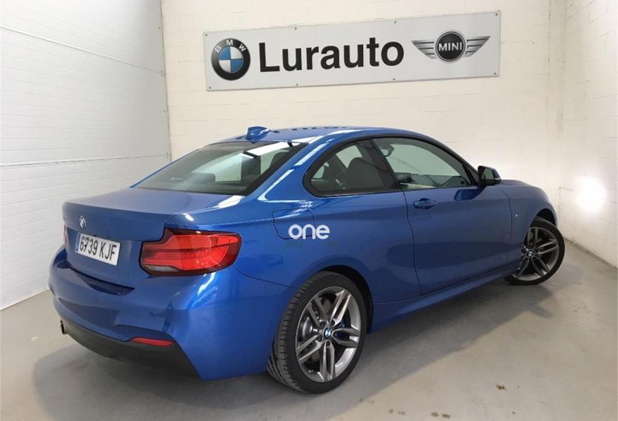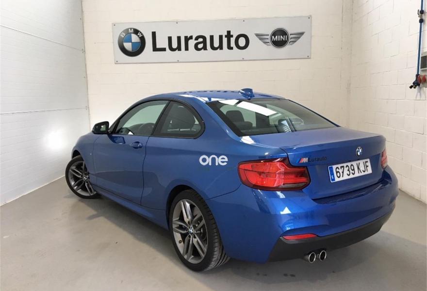 BMW Serie 2, Gasolina, año 2018, 14000 kilómetros, color Azul metalizado, precio 34900€. 18"Llanta al.lig. M radios dobles 461 M Ferricgrey metalizado,Frenos deportivos M,Servotronic,Volante multifunción,Neumáticos con funcionamiento en caso de avería (runflat), Cámara para marcha atrás,Paquete deportivo M,Reposabrazos delantero deslizable,Paquete de retrovisores interior y exteriores,Retrovisor interior con ajuste automático antideslumbramiento,Paquete de compartimentos,Faros antiniebla de LED,Reposacabezas traseros abatibles,Asistente de aparcamiento,Sensor de lluvia, incluyendo accionamiento de las luces de cruce,Climatizador,Control de crucero con función de freno,Paquete de iluminación,Llamada de Emergencia Inteligente,Acabado M Sport,Suspensión deportiva M,Volante de cuero M con airbag,Shadow Line Individual,Cierre centralizado automático...Garantia oficial BMW hasta 03/2021 o 200.000 km.Concesionario oficial BMW Lurauto Oiartzun..