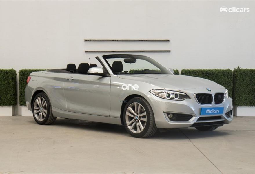 BMW Serie 2, Diesel, año 2016, 26912 kilómetros, color Gris / Plata metalizado, precio 24390€. Paquete de servicios ConnectedDrive,Calefacción de los asientos delanteros,Sistema de navegación Business,Caja de cambios Steptronic,Capota Schwarz,Control de crucero con función de frenado,Cuadro de instrumentos con contenido ampliado,Concierge Service,Real Time Traffic Information,Remote Services,Tela 'Move' Anthrazit,Volante M de cuero,Glaciersilber (metalizado),17", llantas de aleación ligera de radios dobles (estilo 655),Acabado Advantage,Control de distancia en aparcamiento (PDC),Control de distancia en aparcamiento (PDC). Clicars: Nº1 en Europa en venta de coches online