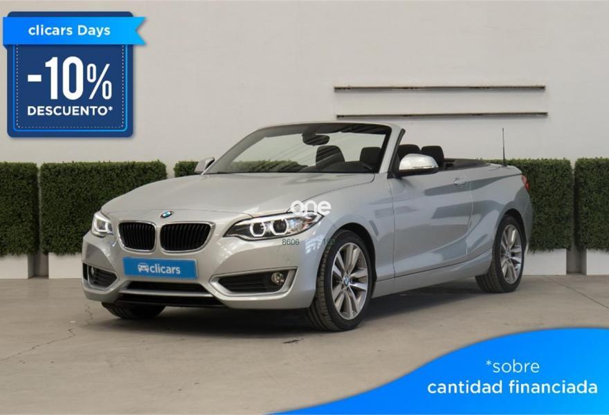BMW Serie 2, Diesel, año 2016, 26912 kilómetros, color Gris / Plata metalizado, precio 24390€. Paquete de servicios ConnectedDrive,Calefacción de los asientos delanteros,Sistema de navegación Business,Caja de cambios Steptronic,Capota Schwarz,Concierge Service,Control de crucero con función de frenado,Cuadro de instrumentos con contenido ampliado,Real Time Traffic Information,Remote Services,Servicios ConnectedDrive,Tela 'Move' Anthrazit,Volante M de cuero,Glaciersilber (metalizado),17", llantas de aleación ligera de radios dobles (estilo 655),Acabado Advantage,Control de distancia en aparcamiento (PDC),Control de distancia en aparcamiento (PDC). Clicars: Nº1 en Europa en venta de coches online