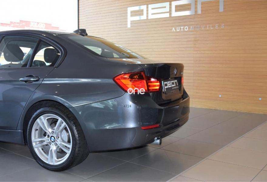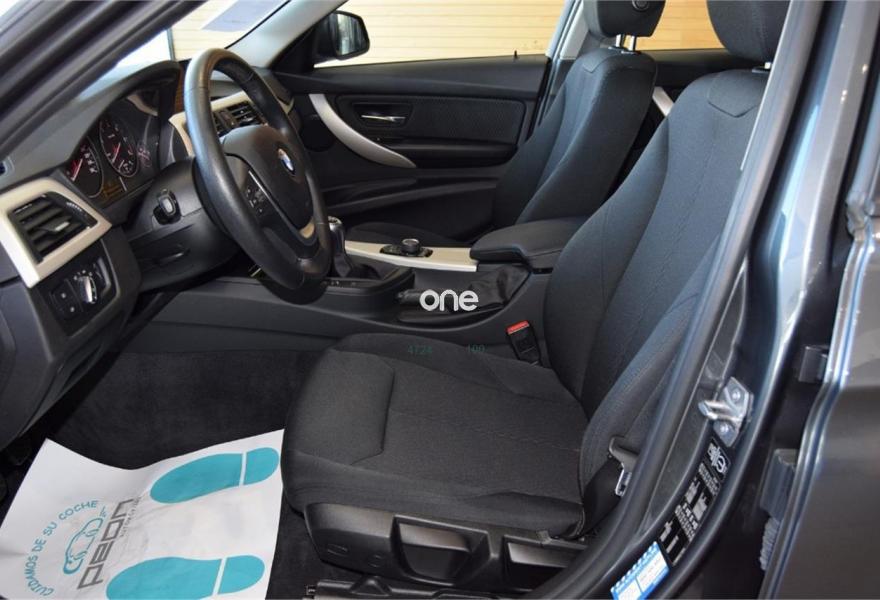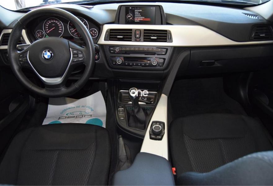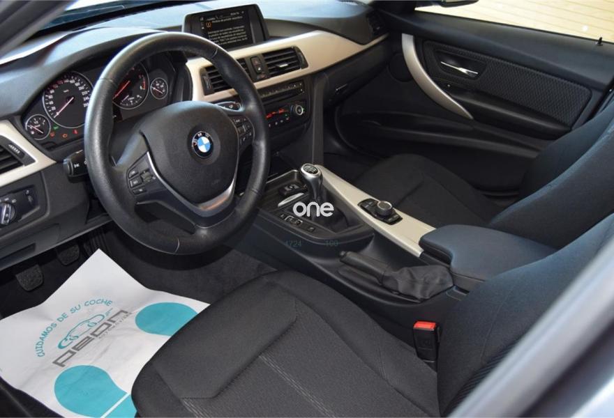 BMW Serie 3, Diesel, año 2014, 90000 kilómetros, color Gris / Plata metalizado, precio 19500€. Volante deportivo multifunción, faros de Xenón para función de luz de cruce y carretera, llantas aluminio 18" M doble medida, conexión USB, climatizador automático bizona, reposabrazos delantero, revestimiento interior en aluminio, sensor aparcamiento delantero y trasero, sensor de luces y lluvia, control de velocidad, teléfono Bluetooth, ISOFIX para plazas traseras, etc, etc. IVA DEDUCIBLE.