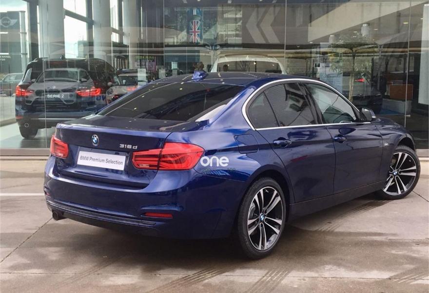 BMW Serie 3, Diesel, año 2018, 2355 kilómetros, color Azul (Mediterranblau) metalizado, precio 31350€. Acabado Sport,Paquete Executive,Asientos deportivos para conductor y acompañante,Sistema de navegación Business,Acristalamiento de protección solar,Mediterranblau (metalizado),Cuadro de instrumentos con contenido ampliado,18", llantas de aleación ligera de radios en V (estilo 398) con neumáticos de diferentes dimensiones,Control de distancia en aparcamiento (PDC). Equipamiento: