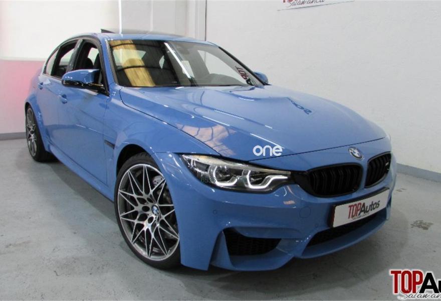 BMW Serie 3, Gasolina, año 2017, 7000 kilómetros, color Azul (YAS MARINA BLAU) metalizado, precio 74999€. Paquete M Competition,Paquete de servicios ConnectedDrive,Preparación para Apple CarPlay,Punto de acceso Wi-Fi,Calefacción de los asientos delanteros,Equipamiento ampliado de cuero BMW Individual,Molduras interiores Aluminium Blade con moldura de acentuación Schwarzchrom,Tablero de instrumentos BMW Individual revestido de cuero,Real Time Traffic Information,Sintonizador DAB,Sistema de sonido surround Harman Kardon,Sistema de telefonía con carga inalámbrica,Entretenimiento online,Equipamiento completo de cuero BMW Individual Schwarz - Steppung hellblau,Persiana solar, ventanillas laterales traseras,Servicios ConnectedDrive,Techo de cristal, eléctrico,Telefonía de confort con conexión ampliada para smartphone,Versión de idioma español,20", llantas de aleación ligera M de radios en estrella (estilo 666 M), forjadas, con neumáticos de diferentes dimensiones,Yas Marina Blau (metalizado),Cambio con embrague doble M con Drivelogic,Suspensión M adaptativa,M Driver´s Package,Asistente de aparcamiento,Driving Assistant,Protección activa. BMW M3 AUTOMÁTICO COMPETITION *** 450CV *** ÚNICO DUEÑO *** COMPLETO HISTORIAL DE REVISIONES EN CONCESIONARIO OFICIAL BMW *** ASIENTOS DELANTEROS DEPORTIVOS CALEFACTABLES ELÉCTRICOS Y CON MEMORIA *** VOLANTE MULTIFUNCION CON LEVAS *** SENSOR DE LUCES *** SENSOR DE LLUVIA *** FAROS BI-XENON *** NAVEGACIÓN PROFESIONAL *** LLANTAS 20" *** ISOFIX *** CÁMARA TRASERA DE MARCHA ATRÁS *** SENSORES DE APARCAMIENTO DELANTEROS Y TRASEROS *** HEAD-UP DISPLAY *** CONTROL DE VELOCIDAD *** TECHO ELÉCTRICO *** SENSORES DE APARCAMIENTO DELANTEROS Y TRASEROS ***recogemos su vehículo como parte de pago ( coche , moto, quad) tenemos whatsapp mándanos detalles a cualquier hora del día* * garantizamos en factura y contrato certificación de kilómetros* * precio NO sujeto a financiación * * * * * GARANTÍA OFICIAL BMW..