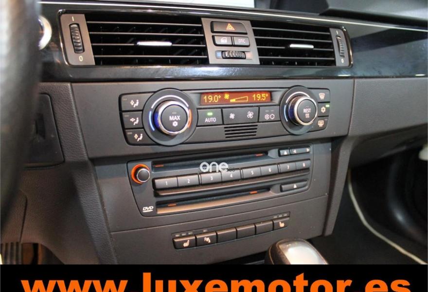 BMW Serie 3, Gasolina, año 2007, 136535 kilómetros, color Beige metalizado, precio 19990€. Alfombrillas de velours,Asientos deportivos conductor/acompañan.,Calefacción de los asientos delanteros,Cuero 'Dakota' Jadegrau,Mold. interiores negro de brillo intenso,Paquete de compartimentos,Soporte lumbar en asientos delanteros,Intercambiador de 6 CD,Preparación teléfono móvil Bluetooth,Radio BMW Professional,Sistema de altavoces HiFi,Sistema de navegación Professional,Control de crucero con función frenado,Dirección activa,Luces autoadaptables incluyendo luz giro,Paquete deportivo M,Paquete de iluminación,Retrovisor interior anti-deslumbramiento,Sensor de lluvia y luces de cruce,Volante de cuero M c/levas cambio y mul.,Volante M de cuero,Confort climático para parabrisas,Llantas aleación M rad. dobles est.225 M,Pintura metalizada,Platinbronze (metalizado),Cambio automático,Levas cambio autom. deportivo en volante,Suspensión deportiva M,Control distancia aparcamiento del/tras.. LUXEMOTOR