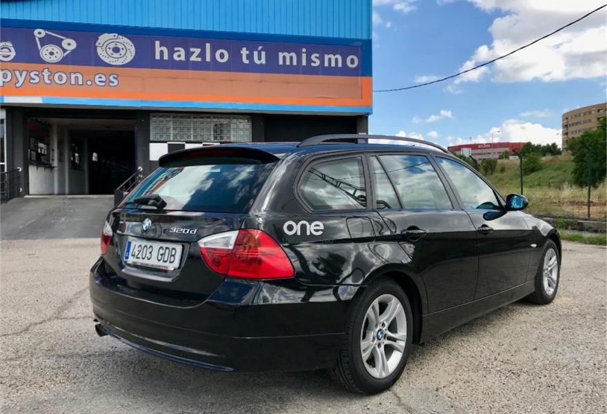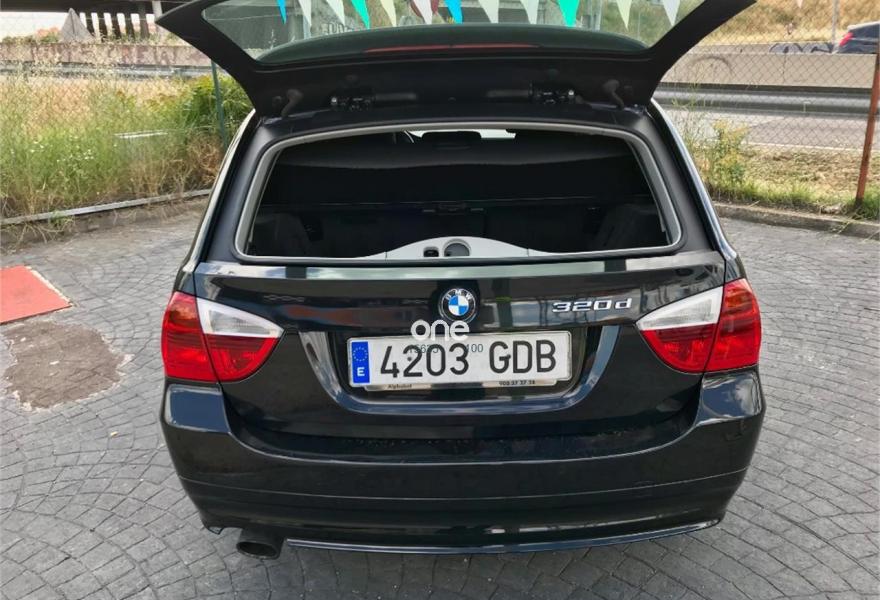 BMW Serie 3, Diesel, año 2007, 223500 kilómetros, color Negro , precio 9500€. Molduras interi. Aluminium Glaciersilber,Reposabrazos delantero deslizable,Tela Fluid Grau,Preparac. teléfono móvil Bluetooth,Radio BMW Professional,Control por voz,Lavado de faros,Control distancia aparcamiento del/detr.,Sistema fijación asiento infantil ISOFIX,Triangulo de emergencia + botiquín. BMW Serie 3 320d Touring Año 2007