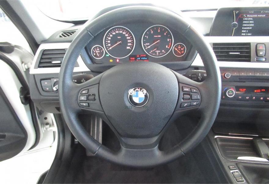 BMW Serie 3, Diesel, año 2013, 99000 kilómetros, color Blanco , precio 17900€. Molduras interiores Aluminium con rectificado longitudinal fino,Sistema de navegación Business,Faros xenón,Lavado de faros,Tela 'Move' Anthrazit,Persiana solar en las ventanillas laterales traseras, mecánica,Sensor de lluvia,Alpinweiß (sólido),Anagrama de modelo, supresión,Supresión de anagrama adicional exterior,Control de distancia de aparcamiento (PDC) delante y detrás,Desactivación del airbag del acompañante. BMW 320 Touring con motor 2.0 turbodiesel de 184 CV y cambio manual de 6 velocidades. La Serie 3 ofrece su carrocería Touring familiar, para los conductores o familias que buscan la presencia y deportividad en un carretera de BMW, sin sacrificar un buen espacio de maletero y amplitud general. El motor de 2 litros y espectacular potencia, ofrece las capacidades requeridas en carretera.