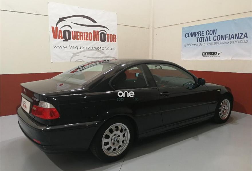 BMW Serie 3, Gasolina, año 2003, 105000 kilómetros, color Negro metalizado, precio 5990€. BMW 318ci, e46, 143cv, 105.000km, NACIONAL. Único propietario, no fumador. Vehículo IMPECABLE, muy cuidado tanto interior como exteriormente, con libro de mantenimiento sellado en servicio oficial BMW. Tapicería en perfecto estado, sin desgaste. Equipado con: climatizador, ordenador de a bordo, retrovisores eléctricos, control de tracción DSC y llantas de aluminio de 16’. ITV hasta julio de 2019.