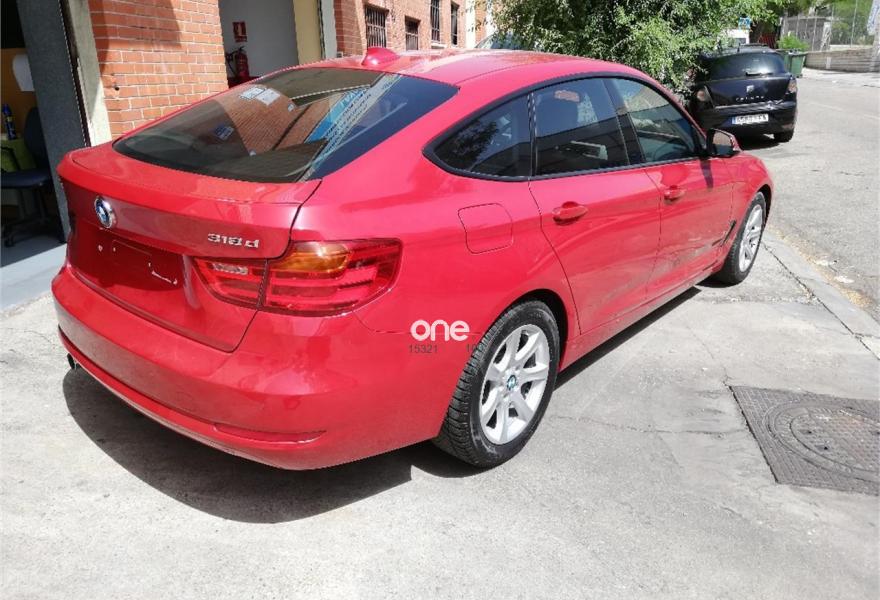 BMW Serie 3, Diesel, año 2014, 148000 kilómetros, color Rojo metalizado, precio 15590€. Molduras interiores Aluminium Hexagon,Reposabrazos delantero, deslizable,Tela 'Track',Sistema de navegación Business,Dispositivo manos libres con interfaz USB,Tomas de corriente adicionales de 12 V,Elementos exteriores en el color de la carrocería,Sensor de lluvia,Retrovisor interior, con ajuste automático anti-deslumbramiento,Tela 'Move' Anthrazit,Volante deportivo de cuero en negro,Espejos retrovisores interior y exteriores con ajuste automático anti-deslumbramiento,Pintura metalizada,Melbourne Rot (metalizado),Control de distancia en aparcamiento (PDC) detrás,Desactivación del airbag del acompañante. BMW 318D Gran Turismo