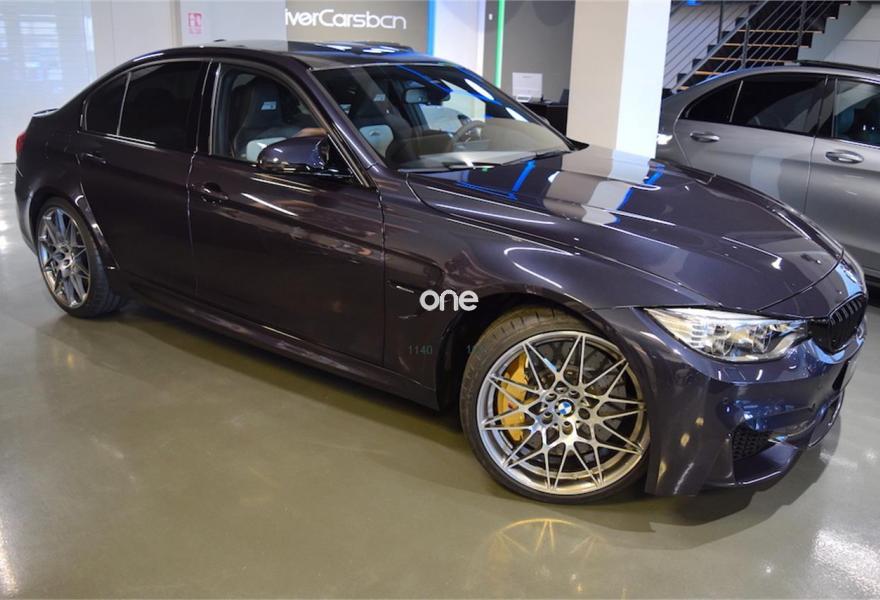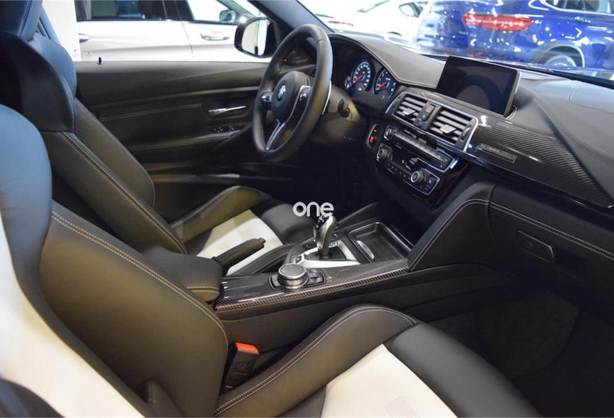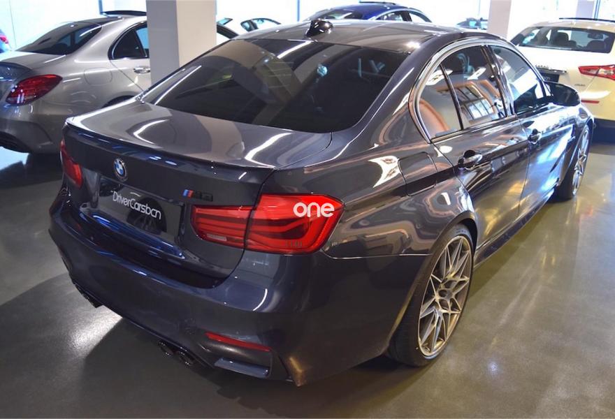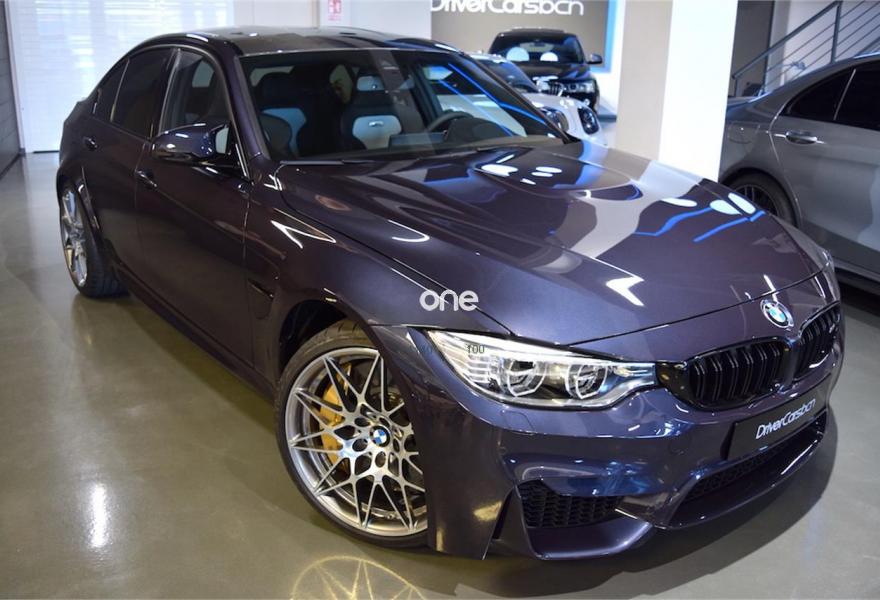 BMW Serie 3, Gasolina, año 2017, 4100 kilómetros, color Azul (Macao) metalizado, precio 74298€. Paquete M Competition,Calefacción de los asientos delanteros,Cuero integral 'Merino',Sistema de sonido surround Harman Kardon,Paquete de competición,20", llantas de aleación ligera M de radios en estrella (estilo 666 M), forjadas, con neumáticos de diferentes dimensiones, negro,Cambio con embrague doble M con Drivelogic,Freno M de carburo de silicio reforzado con fibra de carbono,Suspensión M adaptativa,Asistente de aparcamiento,Driving Assistant. Precio base 74.298€ + IVA 15.602€= 89.900€